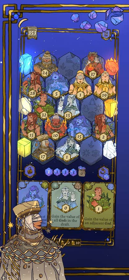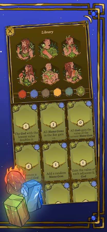 Geo Gods es un emocionante juego de cartas para un solo jugador que combina la creación de cartas y mecánicas simples de colocación de losetas. En este juego, te convertirás en el dueño de la magia elemental de los dioses y crearás tu propio jardín divino único. Cada facción de dioses ofrece su propio conjunto de cartas que se pueden usar estratégicamente para aumentar la puntuación de cada dios. Y para lograr un éxito aún mayor y crear el jardín perfecto, activa 6 cristales elementales de poder. Podrás competir en un torneo semanal donde pondrás a prueba tus habilidades luchando con otros jugadores. También tendrás acceso a tareas que te ayudarán a mejorar tu récord personal y volverte aún más fuerte.