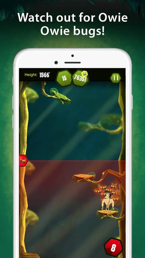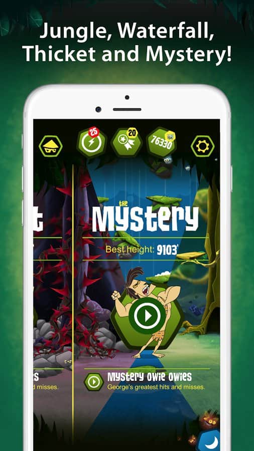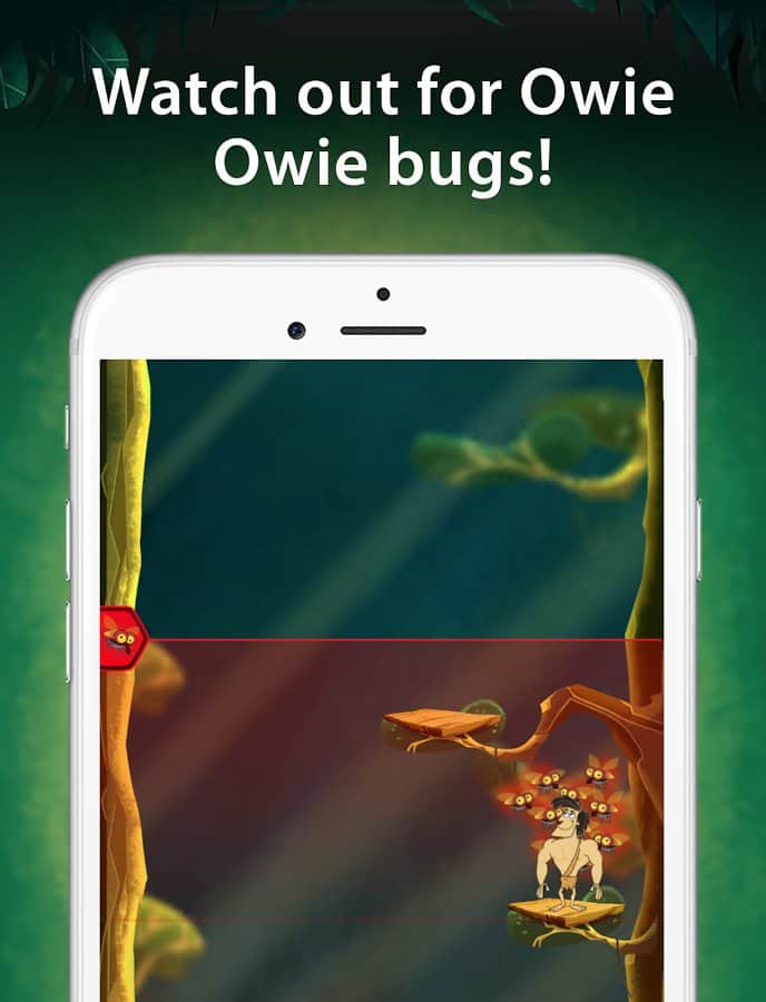 La película de aventura "George de la jungla" fue una vez muy popular y ahora, unos años después, el carismático personaje ha vuelto, pero esta vez en el mundo de los videojuegos. El proyecto ha recibido el nombre de George de la Jungla Owie Owie. George de la Jungla Owie Owie - un saltador de arcade, cuya trama comienza a desarrollarse después de que George regresa a la jungla. Sin embargo, al regresar al seno de la naturaleza, nuestro héroe se sorprendió con que las plantas y los animales han tenido cambios dramáticos, todo se volvió aún más peligroso y "Cusack". Tu tarea es controlar a un personaje para intentar escalar lo más alto posible saltando de plataforma en plataforma mientras evitas varios obstáculos, trampas y depredadores.