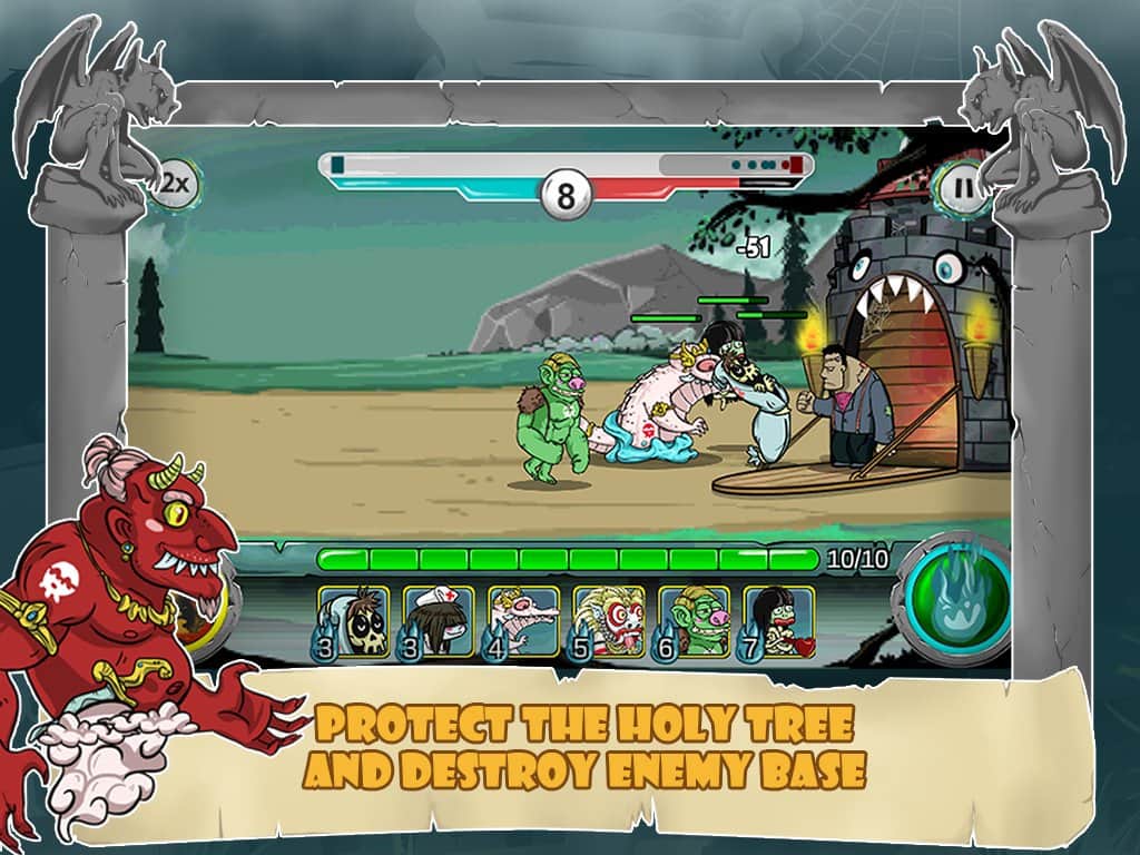 Como cuenta uno de los mitos más antiguos, en algún lugar del más allá hay un árbol, pero no es solo una planta, es la convergencia de toda la energía mundial. Este árbol alimenta a todos los seres que viven en el más allá y casi eternamente así ha sido. Pero apareció un fantasma ambicioso que deseaba obtener el control total sobre la energía, pero los guardianes del árbol, soldados espectrales, no podían permitirlo y comenzó la guerra. A pesar de este argumento épico, el juego en sí tiene una jugabilidad bastante simple y comprensible. Ghost Battle 2 para Android es algo intermedio entre un juego de rol, un rompecabezas y una estrategia táctica de la serie de pared contra pared. Al reunir a tu ejército del más allá, entrenando soldados y participando en encuentros breves pero emocionantes, tu tarea es derrotar al ejército del astuto fantasma y devolver la armonía al mundo de ultratumba.