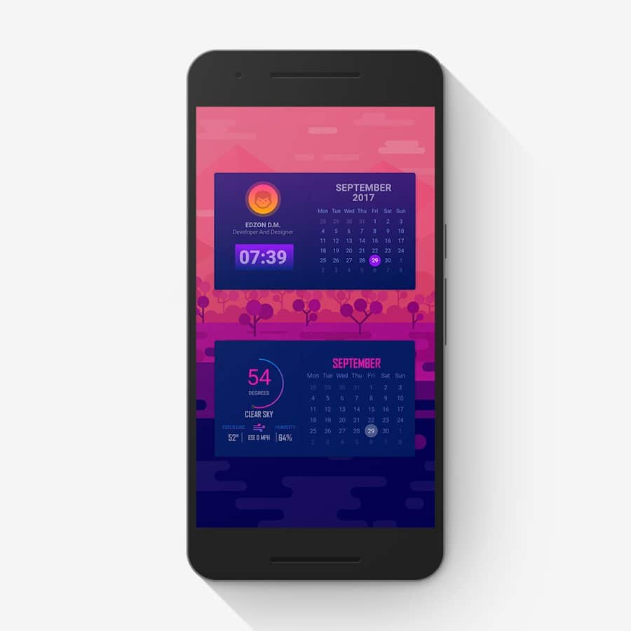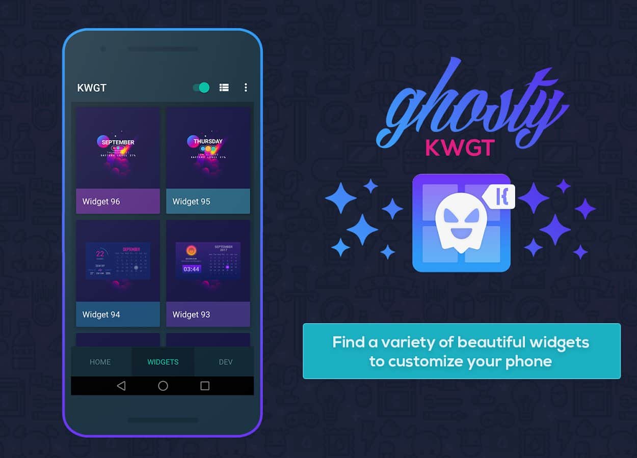 Ghosty KWGT - en esta aplicación encontrarás todos los widgets necesarios, y además, se diferenciarán de los estándar con un diseño genial y un estilo profesional. ¿Quieres un calendario genial? ¡Por supuesto! Pero si tu escritorio no tiene suficiente estilo, podrás cambiar el fondo de pantalla en el tema para widgets. La elección es realmente muy amplia y se actualiza constantemente.