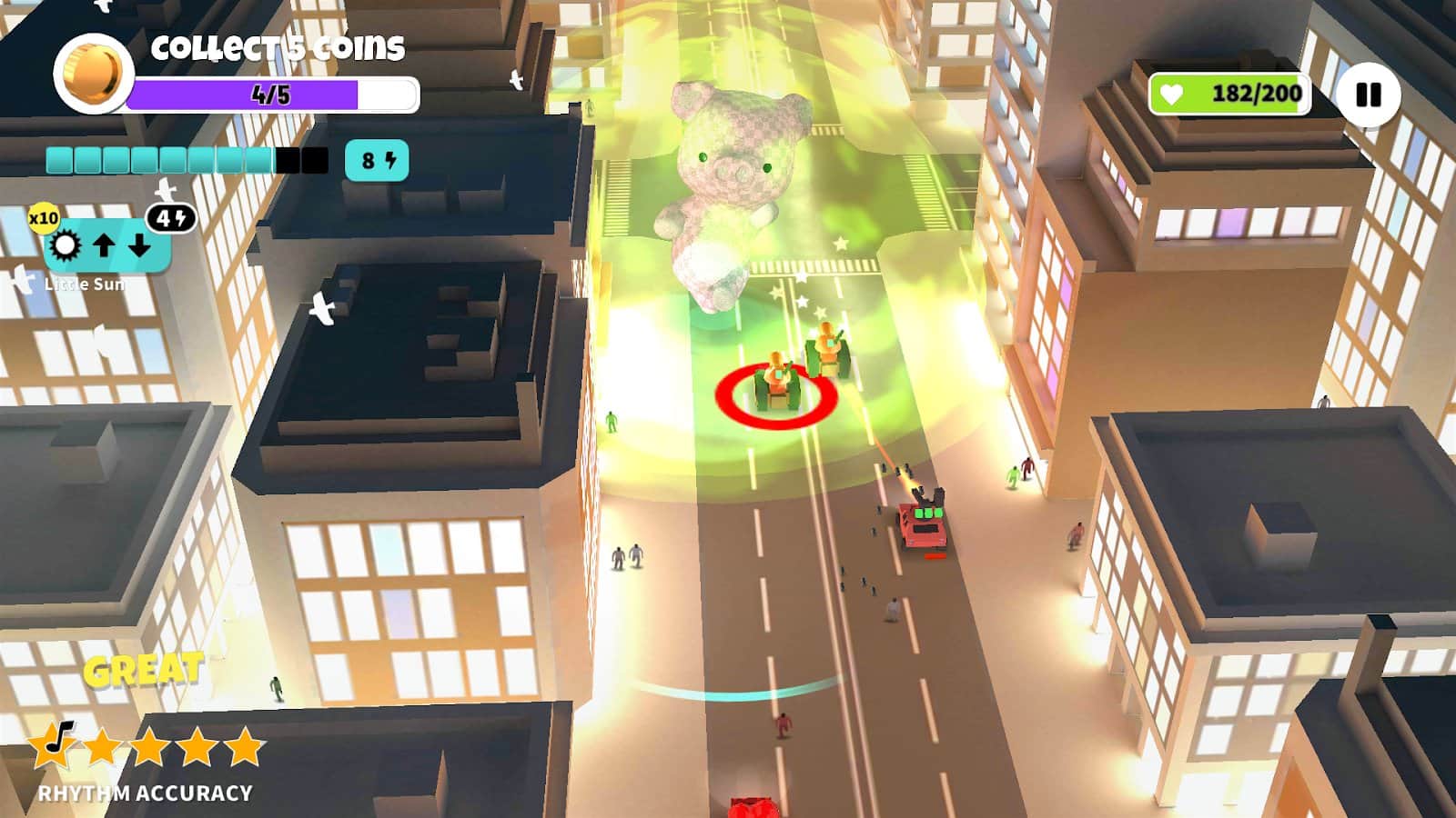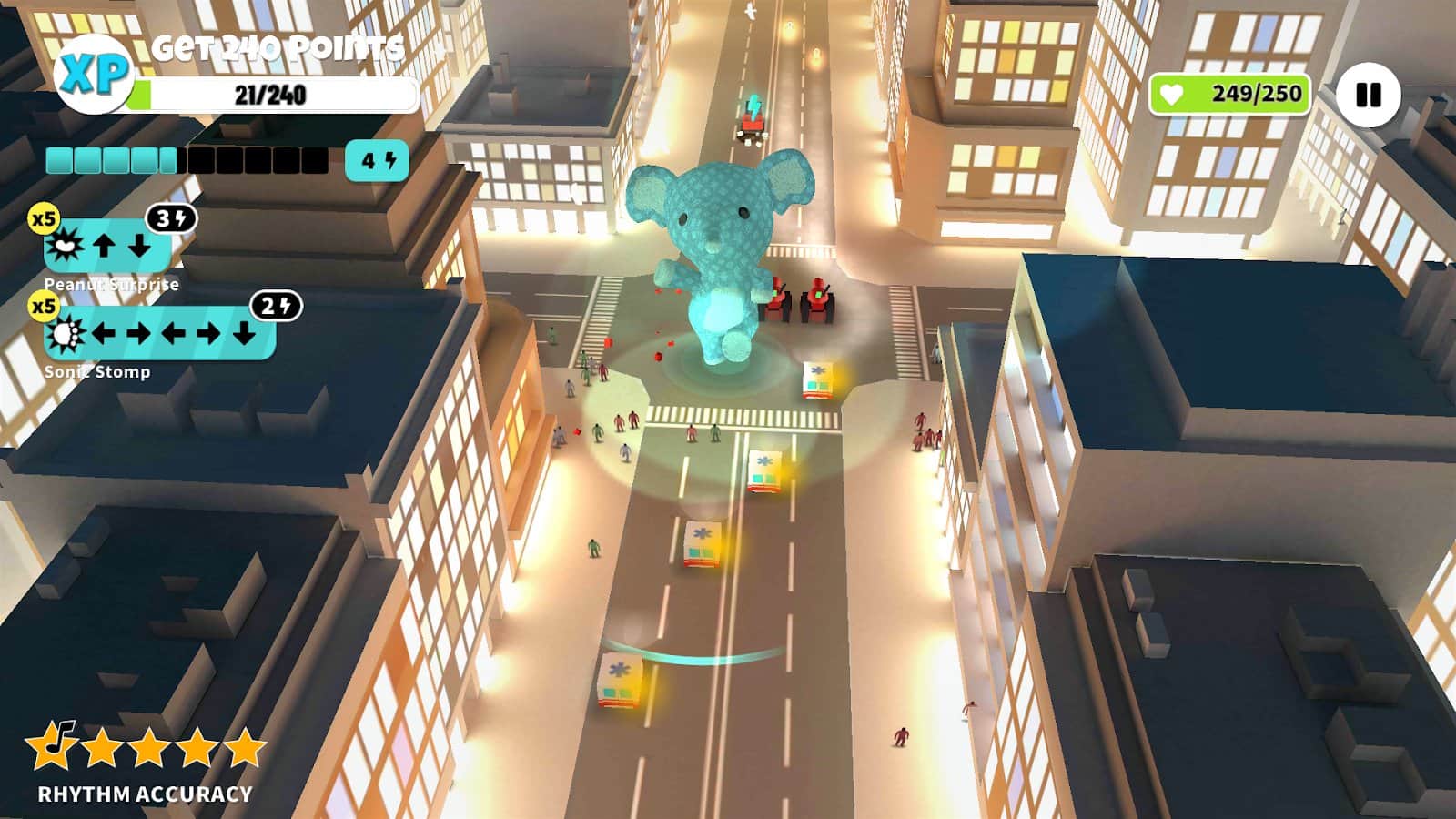 Giant Dancing Plushies es un juego de ritmo fácil en Android, basado en la simple alegría de bailar. Ayuda a tu encantador amante de la música Kaiju a conquistar el planeta... bailar. Desbloquea sus gigantes juguetes de peluche, mejora su conjunto de habilidades y hazlos invencibles. Juega una misión rápida o compite en niveles infinitos para obtener premios, abrir lugares a los que puedes ir y conseguir recursos para mejorar sus mortales armas de atracción masiva. ¡Puedes bailar al ritmo de la música en el juego o tocar con cualquier fuente de música! Usa el ritmo musical como guía para mantener el ritmo correcto y sentir el placer de bailar en cualquier lugar bajo tu música favorita. Compañero de juego perfecto para tu aplicación de música.