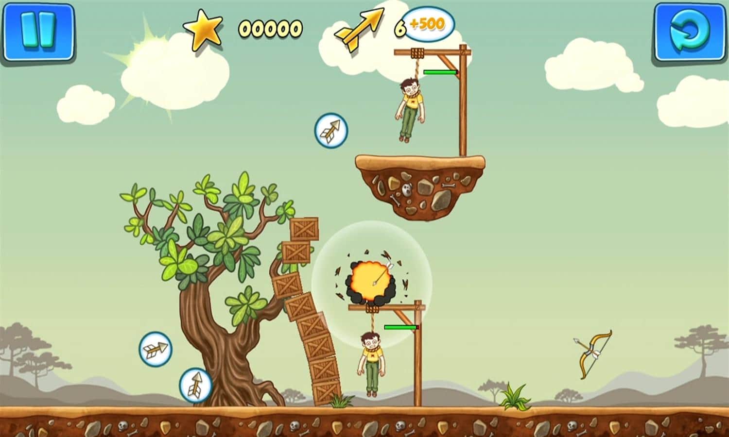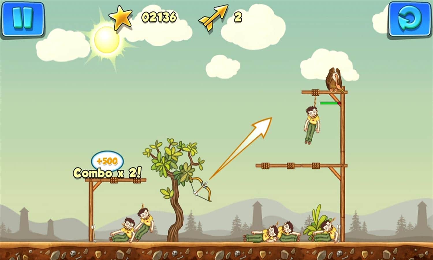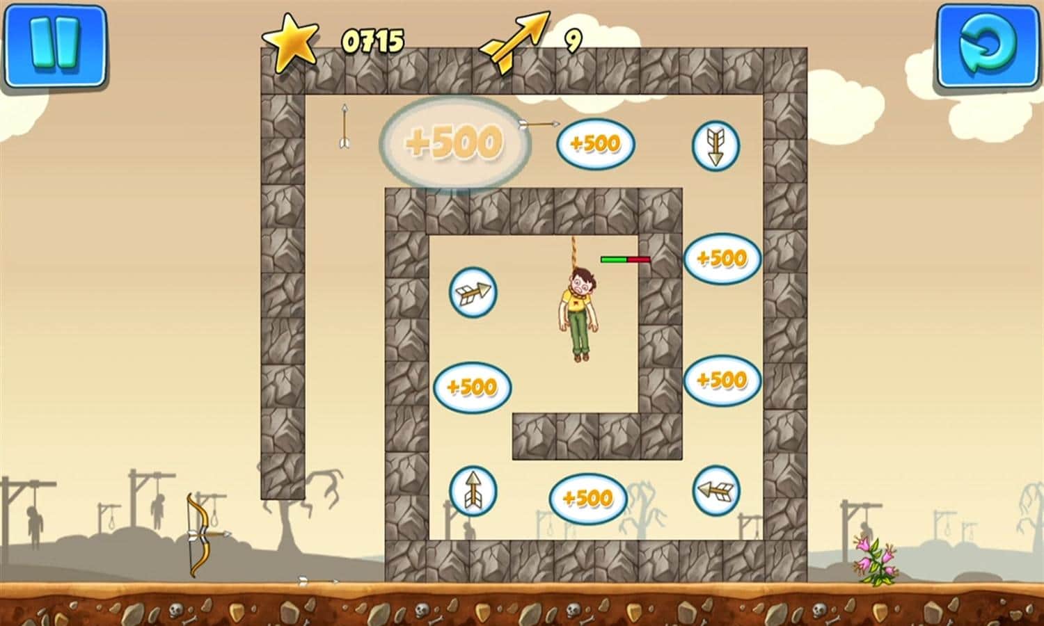 Gibbets 2 - un divertido rompecabezas en el que salvarás a las personas que cuelgan en la horca con flechas. Dispara con el arco a las cuerdas y no dejes que las personas que cuelgan de ellas exhalen su último aliento. Dispara con más precisión para no golpear a los que cuelgan, y utiliza portales y bonificaciones para ayudar a los desafortunados. Completa los 50 niveles y gana la máxima cantidad de puntos para competir con tus amigos.