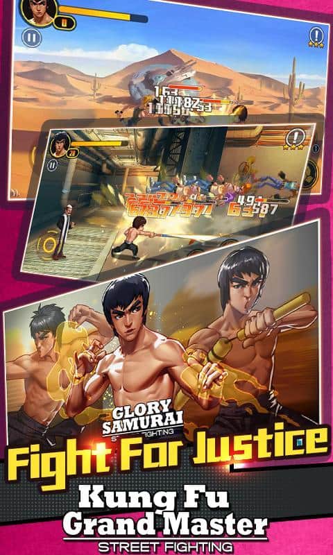 Gloria Samurai - Lucha callejera – juego de lucha para Android donde gestionarás a un valiente luchador que tiene diferentes técnicas de combate. Acepta tu papel en numerosas peleas con enemigos utilizando artes marciales. Viaja alrededor del mundo con su héroe y participa en batallas dinámicas. Descubre todas las nuevas ubicaciones del juego, donde te esperarán enemigos peligrosos. Mueve a tu héroe por la pantalla y defiéndete de todos los enemigos que te atacan desde diferentes lados. Usa técnicas de combate, salta y coloca bloques, y utiliza tus armas para aumentar las posibilidades de ganar contra poderosos jefes.