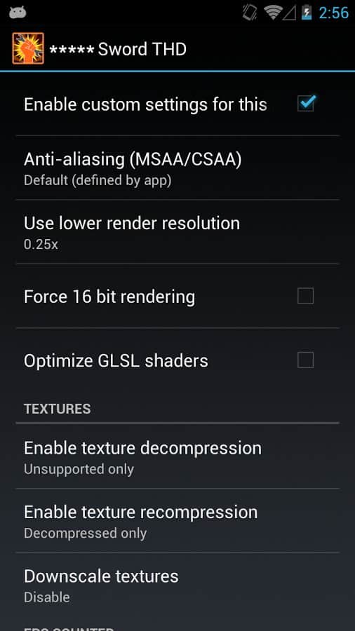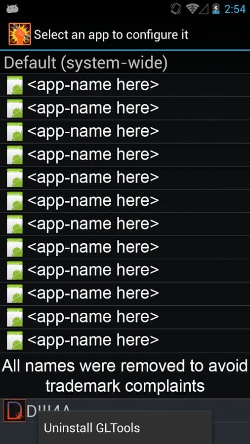GLTools es un controlador OpenGL personalizado, combina con cualquier GPU OpenGL ES 2.0 y procesadores ARM. Desafortunadamente, los procesadores x86 no son compatibles, por ejemplo, la Galaxy Tab 3. El análogo más cercano a esta aplicación - Chainfire3D.