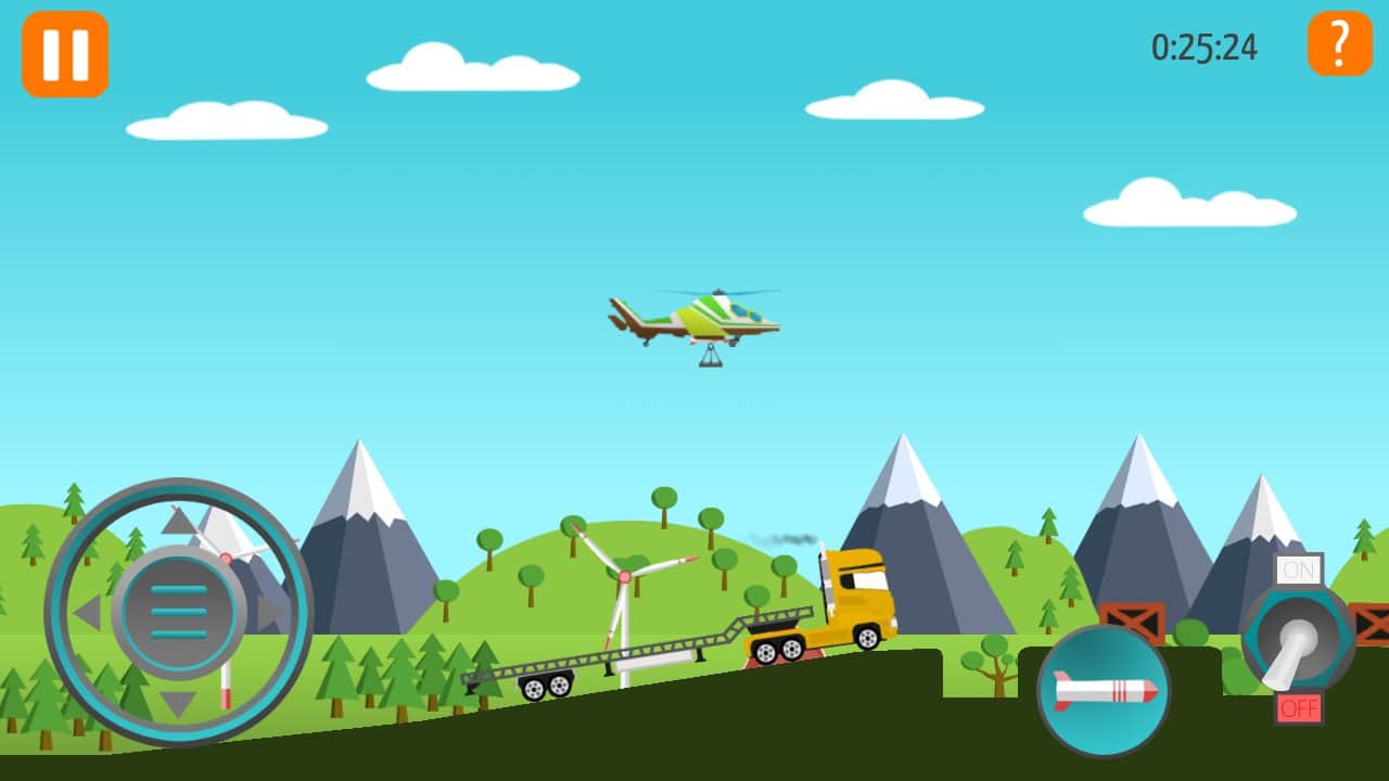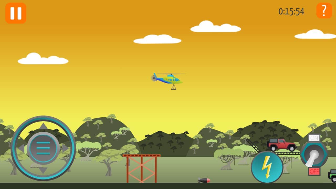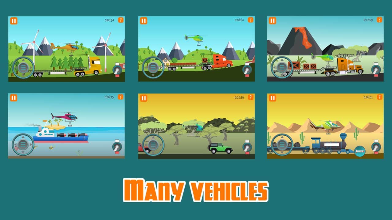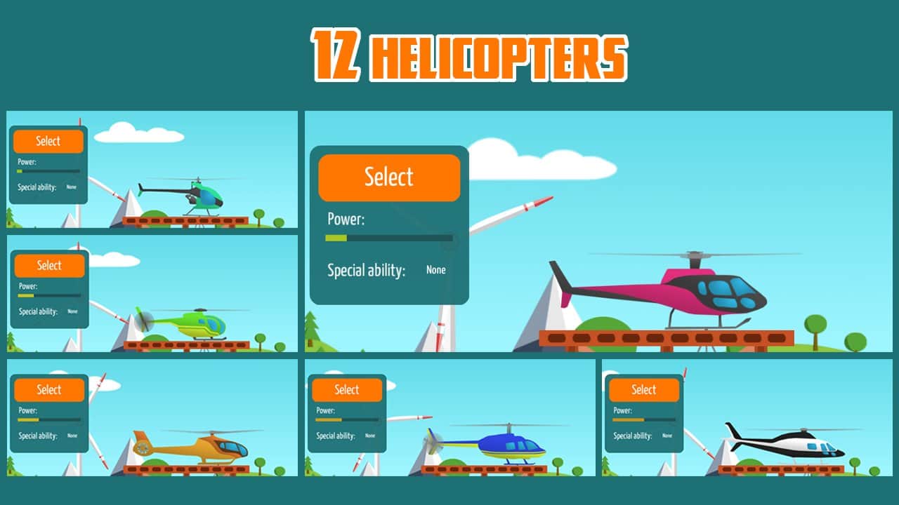 Go Helicopter (Helicópteros) – un juego en Android donde jugarás el papel de un piloto de helicóptero. En este juego, tu tarea principal es volar a baja altura y cumplir todas las misiones y tareas ayudando a coches, barcos y trenes a continuar. En tu camino encontrarás una gran cantidad de problemas diferentes que debes resolver para avanzar. En total, este juego presenta 12 coches diferentes que tienen diferentes propiedades y habilidades. Atraviesa más de 100 niveles de juego y visitarás 8 lugares diferentes como desierto, mar, montañas y la playa. Supera todas las pruebas del juego y resuelve todos los acertijos con puentes, ascensores, elementos explosivos, paredes y cargas pesadas.