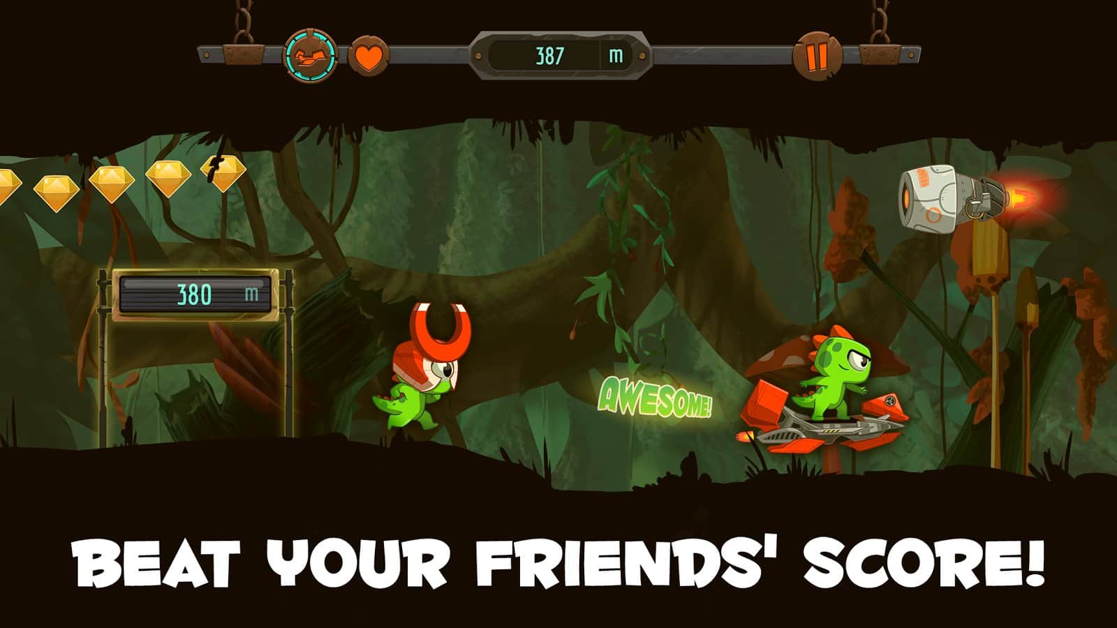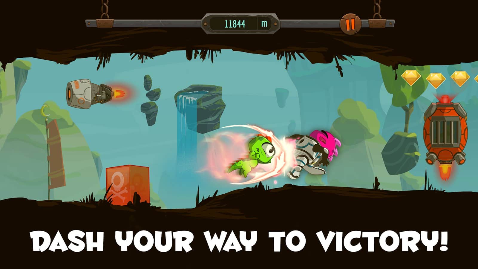 ¡Ve Kizi Ve! - Una aventura fascinante de un pequeño dinosaurio llamado Kesey. Necesita superar a todos tus oponentes usando la gravedad o su habilidad de aceleración. Para cambiar la polaridad, solo necesitas hacer clic una vez en la pantalla y él se moverá del suelo al techo, y si haces clic en otra parte de la pantalla, entonces avanzará de forma muy brusca destruyendo a los enemigos en su camino. Sin embargo, recuerda que no todos ellos pueden ser golpeados por tu fuerza, ¡algunos aún tendrán que saltar! Colecciona monedas y mejora tu personaje.