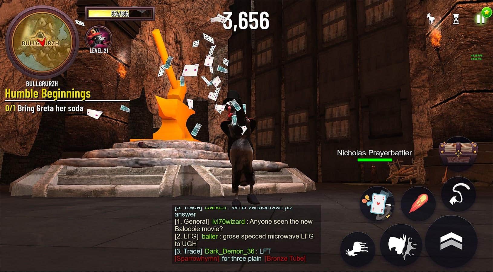 Goat Simulator MMO Simulator / Simulador de Cabra MMO – el épico cabra nos alegra nuevamente con su aparición. Ahora, las increíbles aventuras transcurren en una atmósfera MMO. Prueba las armaduras de cabra y adelante, realiza hazañas o travesuras. La cabra ha evolucionado a cinco clases diferentes a tu elección. El guerrero siempre puede hacer frente al enemigo o simplemente sacar la tontería con su fuerza bruta. El mago, por supuesto, estará lanzando hechizos, el pícaro y el cazador tienen sus propias habilidades. Y jugar como un microondas andante es simplemente una explosión en la cabeza. Un montón de misiones, combates desiguales, diversión y alegría esperan a su cabra).
