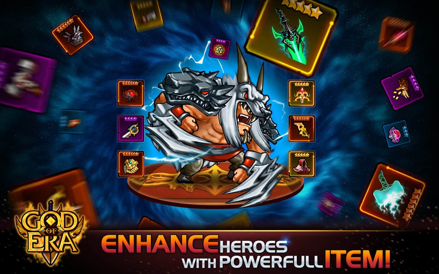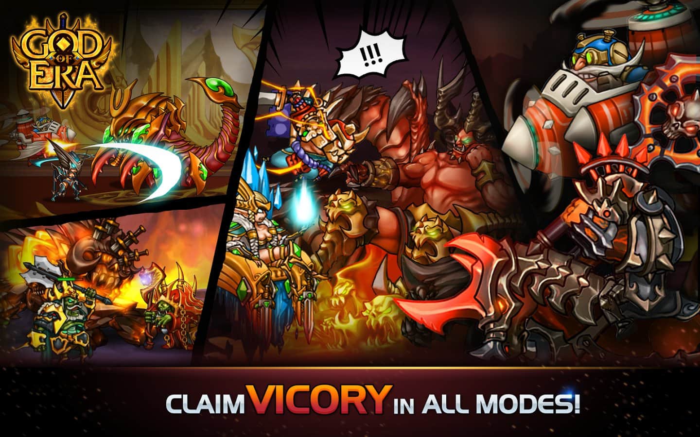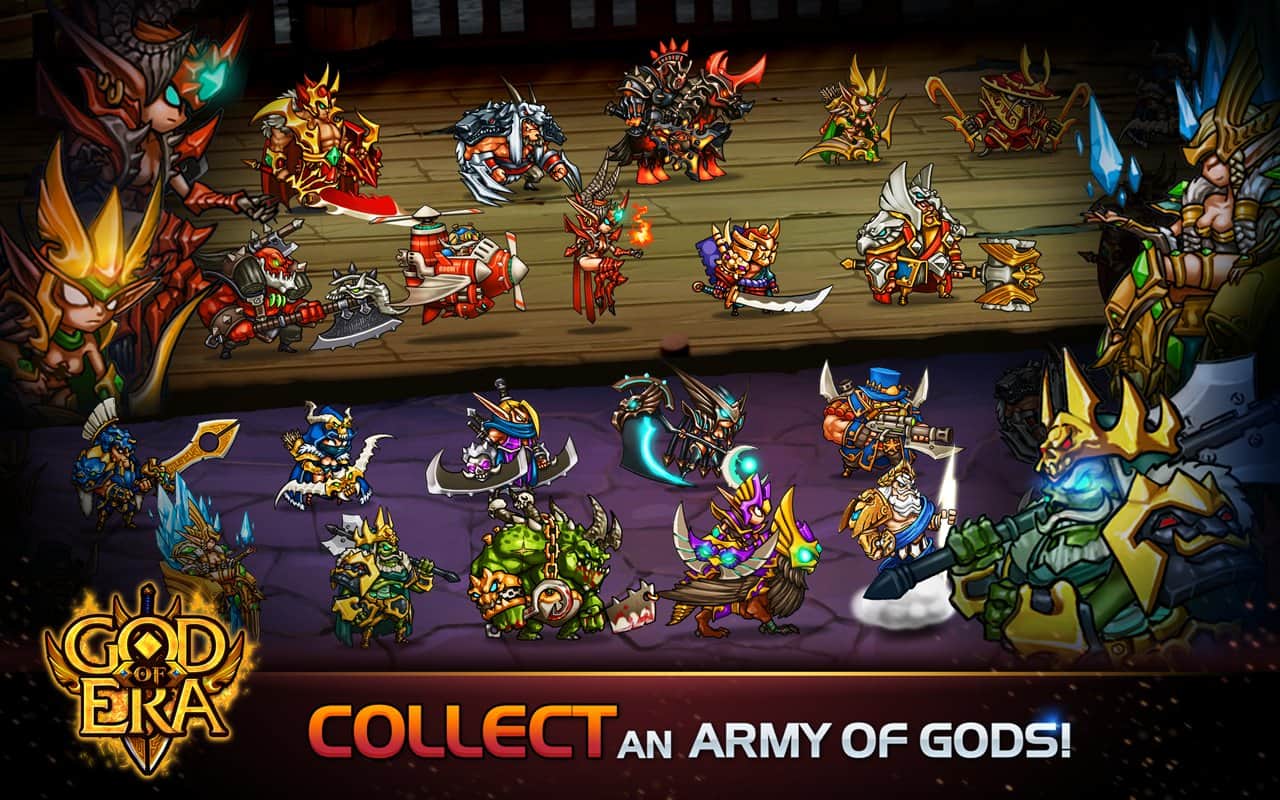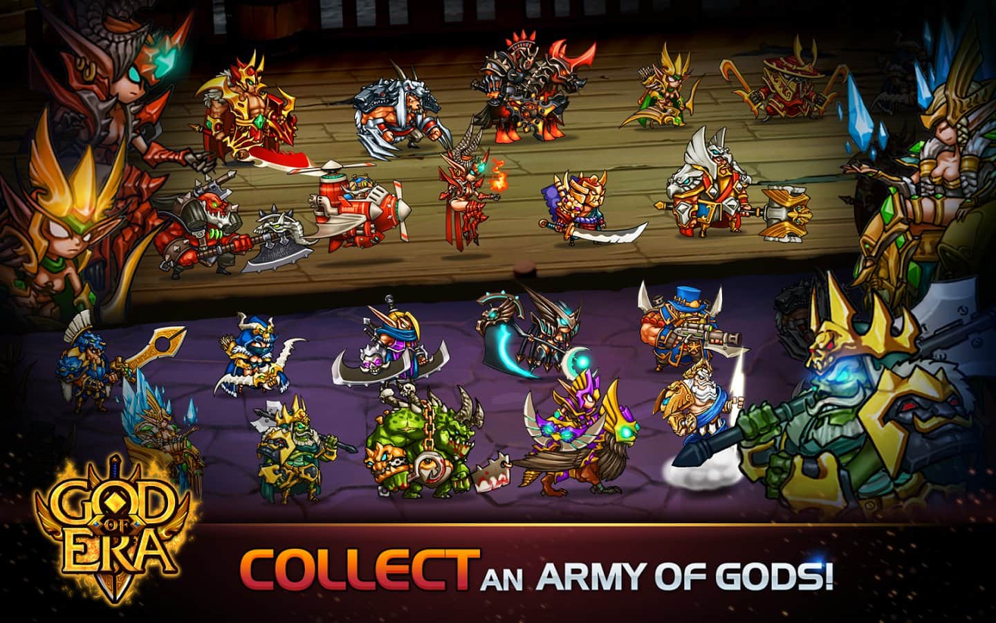 Dios de la Era: Héroes de Guerra - un juego de rol muy interesante en el que juegas como un personaje único y épico. Tu guerra junto a ti participará en diversas batallas. Vino la guerra mundial después de que el poder mágico apareció en tu mundo. ¡Ahora necesitas crear un enorme ejército para confrontar a los diversos monstruos y, eventualmente, unir todo el Reino!