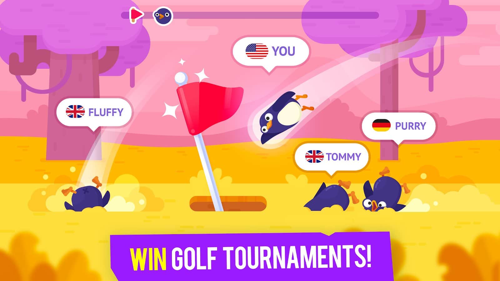Golfmasters - Juego de Golf Divertido – divertido Golf en Android donde viajarás a lugares inusuales. En este juego te encontrarás con el vuelo del pingüino que justo resulta ser bueno volando. Golpea al pingüino fuerte y haz que vuele lo más lejos posible para alcanzar los pozos. Rodea el camino de numerosos obstáculos y dificultades y obtén grandes recompensas al pasar de nivel. Juega este juego y disfruta de un control simple e intuitivo, excelentes gráficos brillantes y numerosos niveles.
