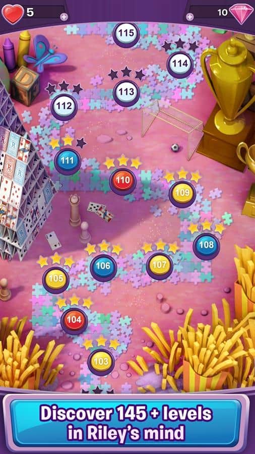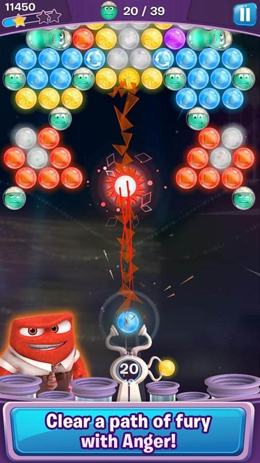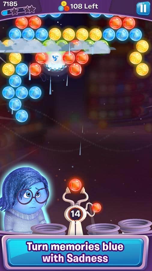 Inside Out Thought Bubbles – un género de juego de tres en una serie creada por el cartoon homónimo de Disney. En este juego ayudarás a cinco emociones diferentes de la niña a lidiar con todas las circunstancias de su vida. Nuestra heroína Riley tiene once años y su vida ha alcanzado un punto crítico que ha llevado a una variedad de emociones en su cabeza. Maneja cinco emociones como la alegría, la tristeza, la ira, el asco y el miedo, y haz todo lo posible para resolver todos los problemas y devolver el buen humor a Riley. Reúne las mismas bolas y gestiona las emociones de la niña en el momento de la vida. Supera más de 125 niveles únicos y utiliza las habilidades únicas de cada emoción para resolver un rompecabezas difícil. Los personajes del juego son doblados por los actores de la película.