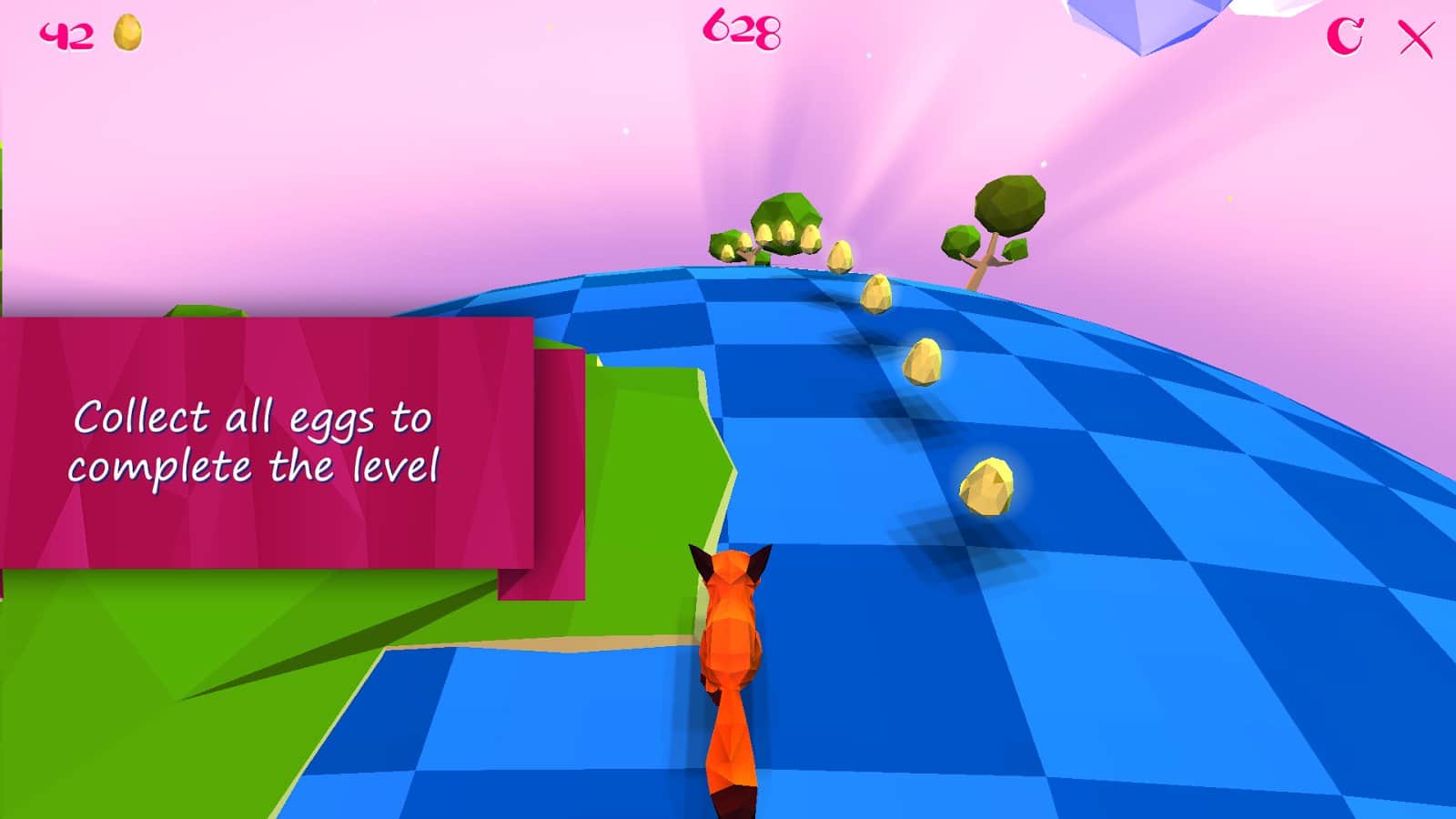 Buenos Días Zorro: juego de carrera – corredor para Android, donde ayudarás al Zorro a atrapar las gallinas. En este juego te encontrarás en gráficos 3D de baja poligonación, donde moverás un Zorro en las celdas que componen el mundo y atraparás gallinas. Mueve a través de coloridos niveles de juego y recoge las gallinas y sus huevos, mientras evitas numerosas trampas y obstáculos en el camino. Presiona el lado apropiado de la pantalla para mover al Zorro a la derecha o a la izquierda. Con cada nuevo nivel, la complejidad del juego aumentará y tendrás que esforzarte para completar el juego hasta el final. Juega este juego y disfruta de una gran música y 24 niveles únicos.