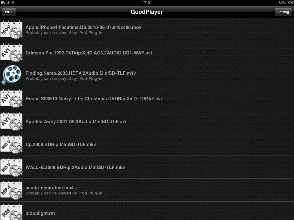 GoodPlayer es un excelente reproductor para dispositivos con sistema operativo iOS. Gracias a este reproductor, no tendrás que codificar cada vez los archivos de video cuando desees ver cualquier video o película en tu dispositivo. Este reproductor admite cualquier formato como: AVI, Xvid, Divx, DAT, VOB, FLV, WMV, MKV, MP4, RM, RMVB, HTTP, FTP, RTSP, MMS, SMB, MMSH, MMST, RTP, UPnP y UDP, entre otros. Instala este reproductor en tu teléfono o tableta y simplemente transfiere archivos a través de iTunes File Sharing o mediante Wi-Fi y reprodúcelos de inmediato. Este reproductor reducirá considerablemente el tiempo que dedicas a ver tus grabaciones o películas favoritas.