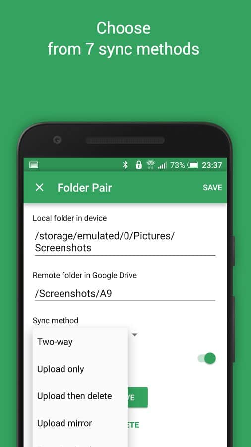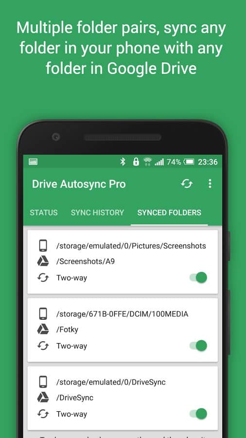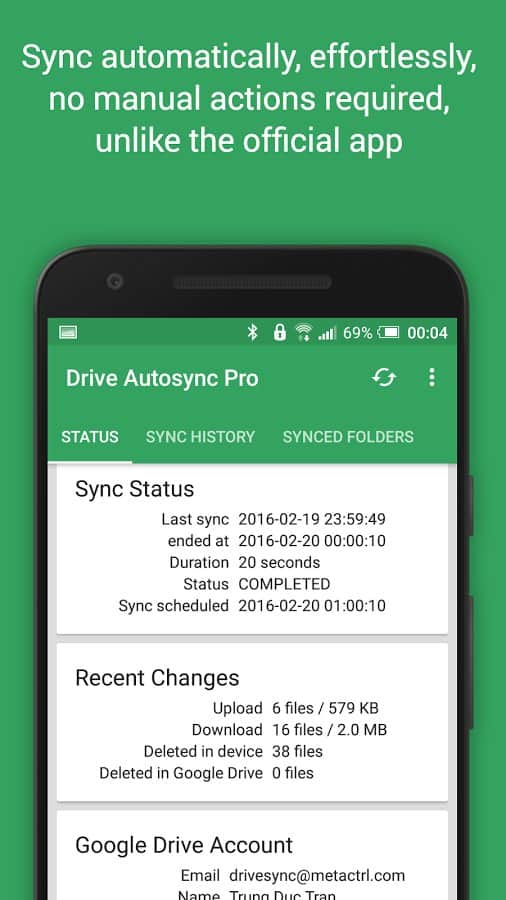 Google Drive Sync (DriveSync) es un buen cliente para smartphones/tabletas Android, que proporciona a sus usuarios una sincronización bidireccional completa con Google Drive. La interfaz, la fiabilidad, el consumo económico de batería y mucho más no te hacen dudar en elegir el programa adecuado.