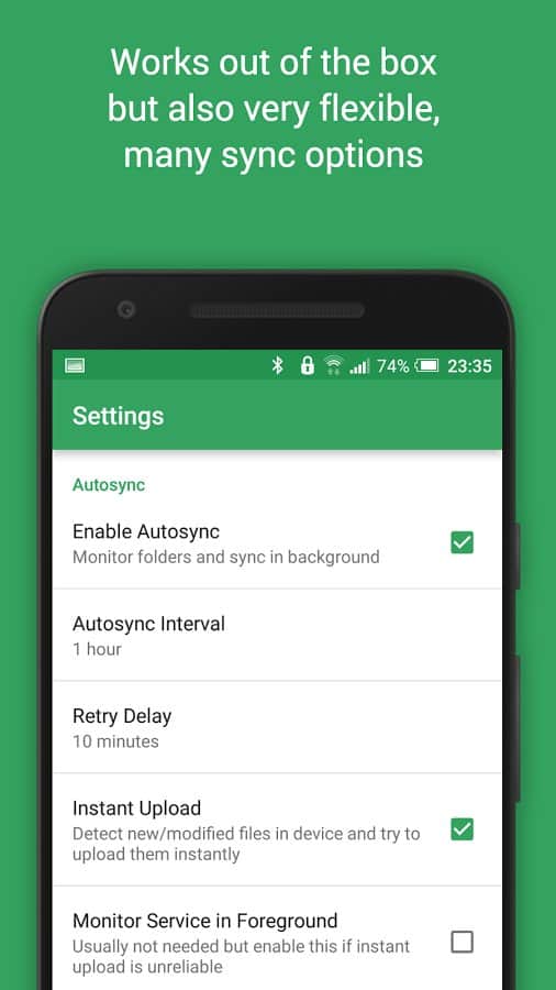- Intervalo de AutoSync configurable: 15 minutos, 30 minutos, cada hora.