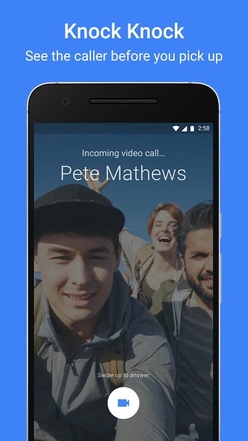 Google Duo - Esta aplicación ya se ha convertido en un éxito, aunque salió recientemente, no solo ha superado a sus contrapartes, sino que las ha dejado muy atrás. Todo esto gracias a su funcionalidad no estándar. Mientras que otras aplicaciones para videollamadas muestran a dos personas, esta aplicación tiene la función de Knock-Knock. Es como un golpe en la puerta, es decir, en el momento de la llamada, la persona que recibe la llamada puede ver quién está llamando mientras que el que llama no ve nada. Y así puedes decidir si aceptar el reto o no.