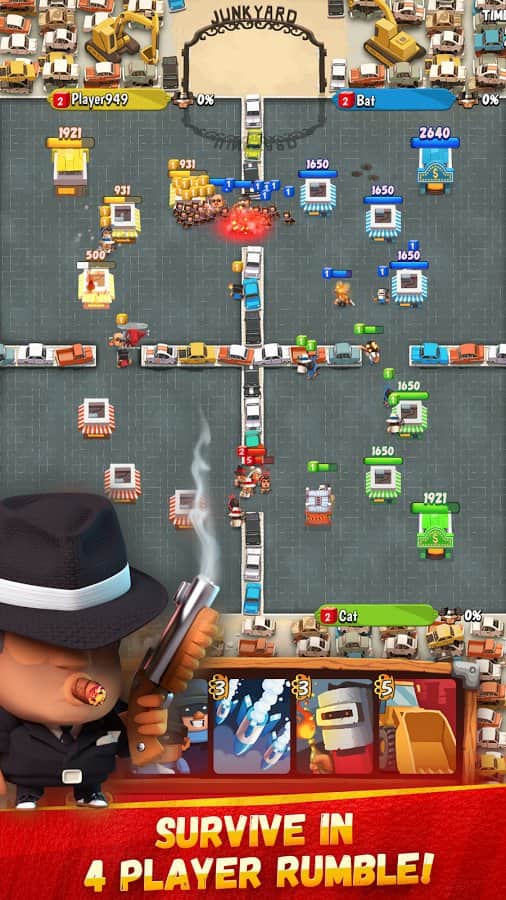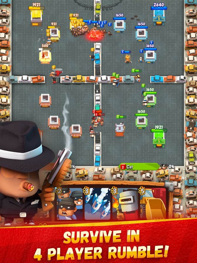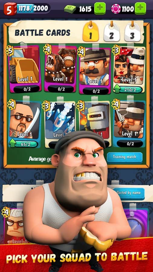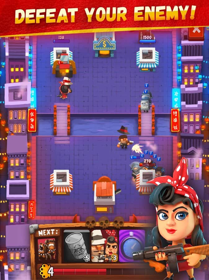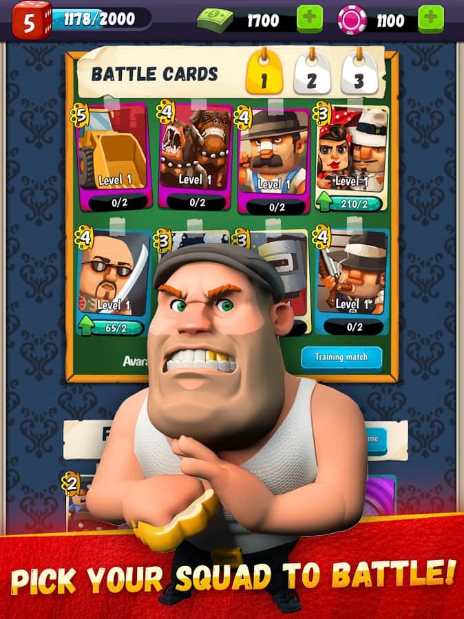 Goon Squad es una gran estrategia de cartas que recuerda bien a todos los famosos Clash Royale. En este juego comienzas tu viaje como un pequeño matón que quiere crecer hasta convertirse en el padrino de la mafia y tener la reputación de ser el jefe de la mafia más temido y sediento de sangre. Pero para ganar respeto, necesitarás capturar la ciudad. Desafía a otros jugadores y asciende en las escaleras del crimen.