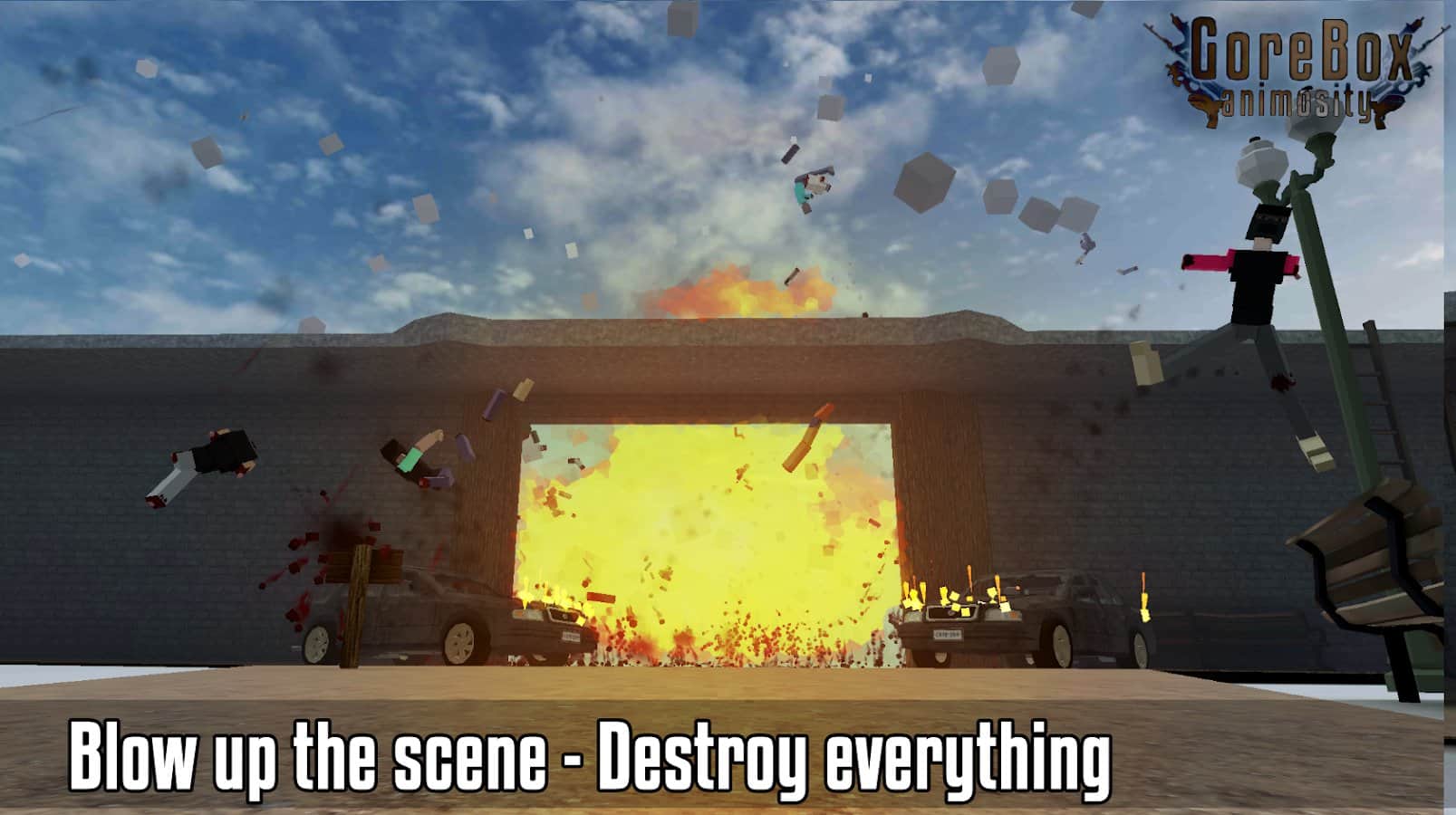 GoreBox - Animosidad - ¡deja que empiece el verdadero derramamiento de sangre en la enorme arena! Comienza ahora mismo desde cero para crear tu propio sandbox, donde tú y otros jugadores podrán: usar el arma principal, conducir cualquier coche, cambiar tu apariencia, manipular el entorno de diversas maneras, destruir todo a tu alrededor, construir nuevos edificios y así sucesivamente. Habrá un territorio interminable a tu disposición, así que la elección será solo tuya. Pásalo bien y crea el caos con el que solo podías soñar en tus sueños.