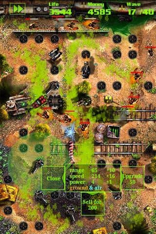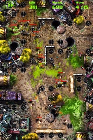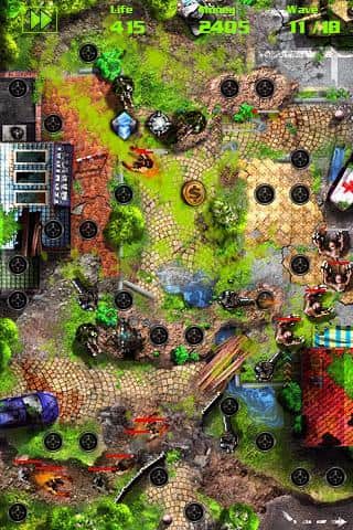 GRave Defense Gold para Android del género de defensa de torres. En este juego serás transportado al mundo después del Apocalipsis y tu única tarea será sobrevivir en este horrible mundo. Coloca en el camino de los zombis hacia tu campamento numerosas torres, cada una de las cuales tendrá características y características únicas. El juego cuenta con una enorme cantidad de diferentes torres, cada una de las cuales ralentizará o congelará a los zombis, les lanzará proyectiles, y también podrás mejorarlas para fortalecer otras torres. Ten cuidado con los zombis mutantes que pueden destruir tus torres y ralentizarlas. Repela a los zombis y no dejes que destruyan tu base.