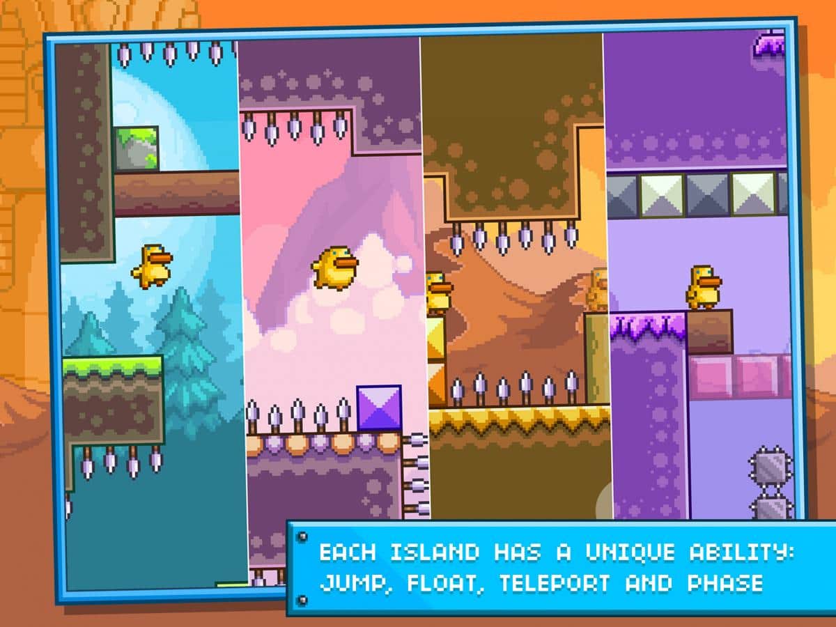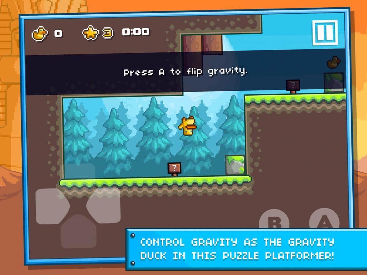 Islas del Pato Gravitacional - la historia te contará sobre un pequeño y muy valiente pato. Aquí encontrarás el significado más profundo, o la historia, es un juego de arcade ordinario en el que necesitas pasar nivel tras nivel mientras usas solo botones para moverte, saltar y cambiar la gravedad.