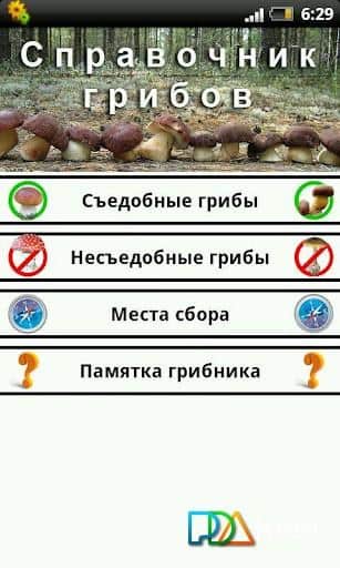 Hongos. El manual es una pequeña, pero decente referencia para los hongos que crecen en el centro de Rusia en Android. Sé un verdadero asistente para ti en la búsqueda de hongos. En el directorio se mencionan 68 hongos populares, 30 comestibles y venenosos. Ten cuidado y consúltalo cuando decidas cortar un hongo desconocido. En general, el programa no es complicado y claro, hay imágenes de los hongos con una descripción detallada y método de preparación, así como lugares convenientes para recolectarlos. Para facilitar la referencia, se han identificado las siguientes categorías: Hongos comestibles, Incomestibles, Lugares de recolección y un Recordatorio del hongo.