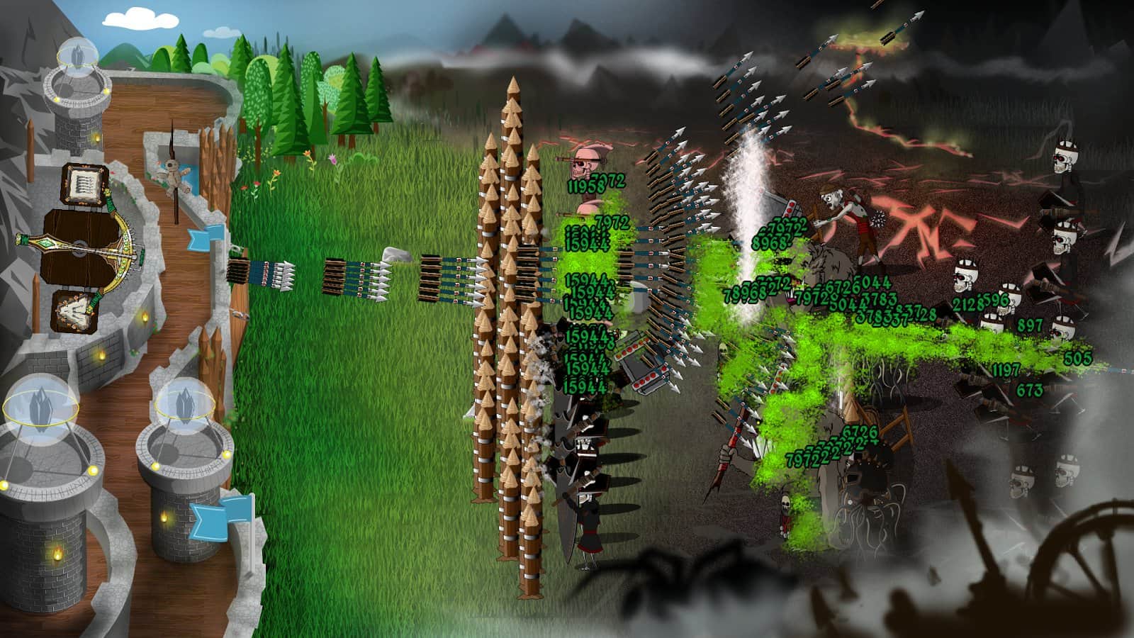 Defensor sombrío: Defensa de castillos y torres – estrategia, donde defiendes el castillo de hordas de monstruos y dragones. Eres el único que puede proteger el castillo de los enemigos, así que usa tu ballesta y no dejes que el enemigo se acerque. Los monstruos salieron de la mazmorra y trajeron todas sus fuerzas para capturar tu castillo, no dejes que lo hagan. Construye en el camino del enemigo muros de troncos, coloca una trampa mágica, destruye monstruos con frío, fuego y electricidad. Obtén grandes recompensas por destruir enemigos y desbloquea nuevas habilidades mágicas.