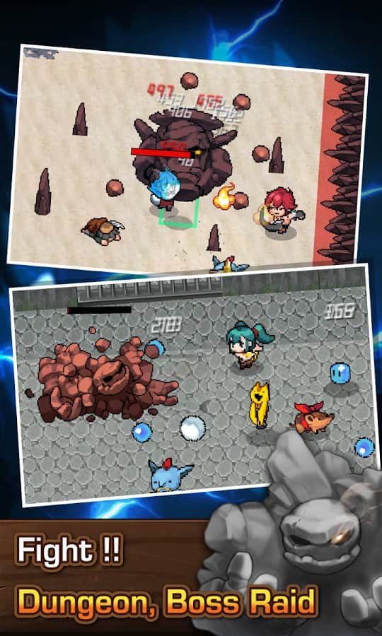 Grow Stone Online - el RPG inactivo es un juego fascinante en Android, donde viajarás a través de las minas abandonadas y extraerás piedras. En este juego, tu tarea será obtener tantas piedras como sea posible y usarlas para luchar contra jefes fuertes. Acércate lo más posible a la piedra y presiona la pantalla de tu teléfono o tableta para recogerlas. Recoge piedras de diferentes tipos y mézclalas para obtener más poder. Consigue las piedras más fuertes y poderosas que te permitirán enfrentarte a los jefes poderosos. Tan pronto como recojas suficientes gemas, ve al bosque y pon a prueba tus habilidades y poder.
