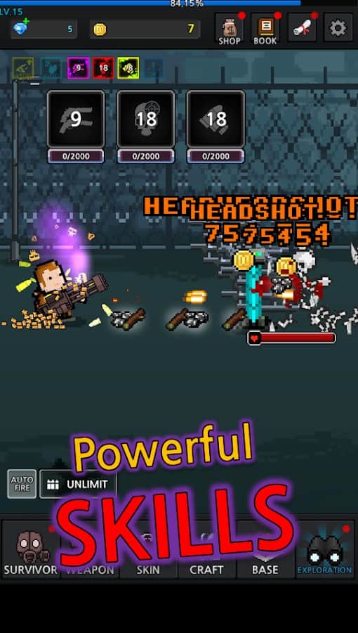Crecimiento Superviviente - Supervivencia Muerta - toma las armas y destruye a todos los zombis que se acerquen a ti. Sobreviviste al Apocalipsis y ahora tu tarea principal será matar a todos los zombis y encontrar una vacuna contra el virus. Con poderosas armas, destruye a todos los zombis y poderosos jefes. Recoge los objetos que desees y bonificaciones, que te permitirán acceder a nuevas armas. Presiona tan a menudo como sea posible en la pantalla de tu teléfono o tableta y destruye a los zombis. En esta guerra, no estás solo, así que une fuerzas con otros héroes y lucha contra hordas de zombis. Mantén la defensa de la base y derrota a los enemigos.
