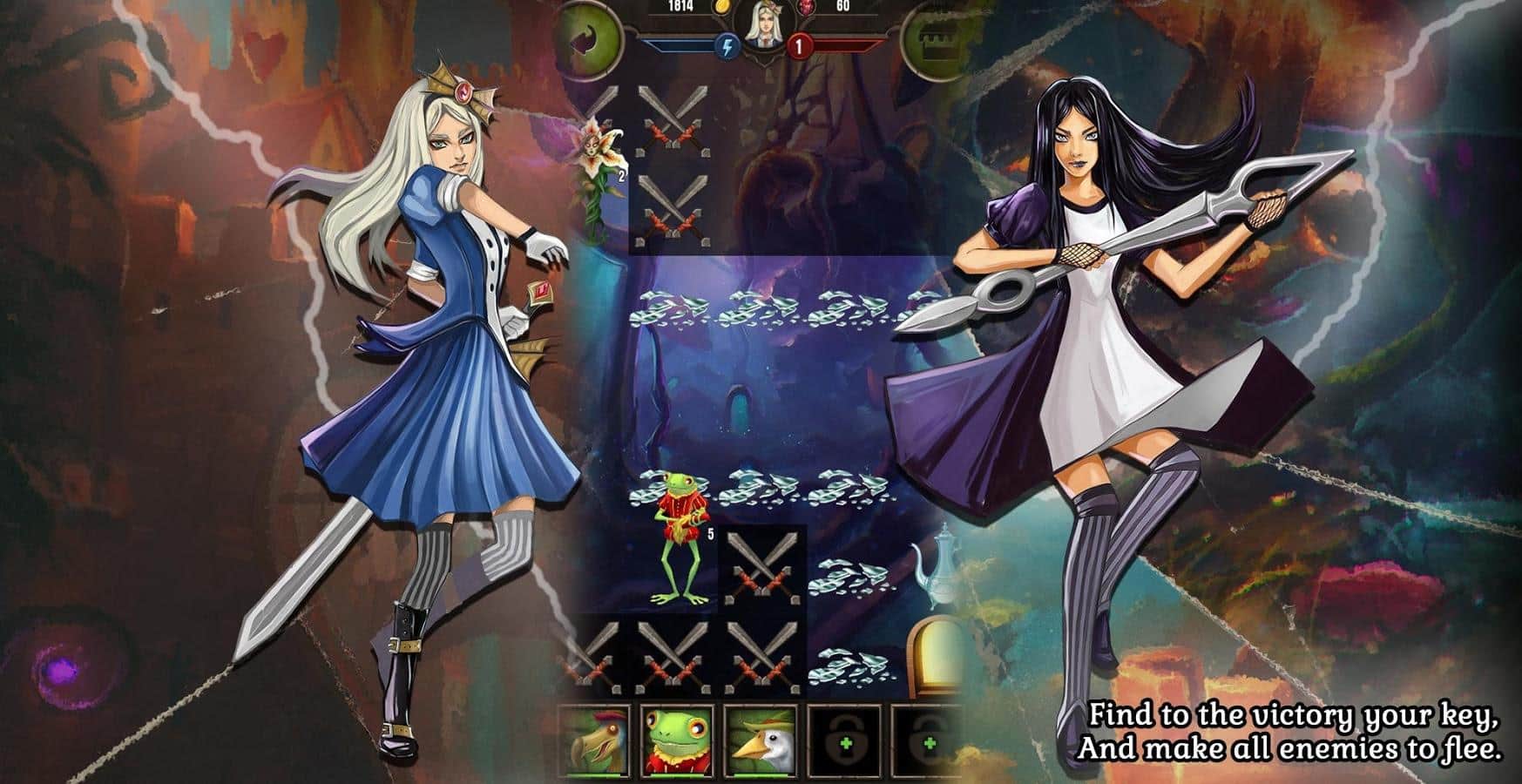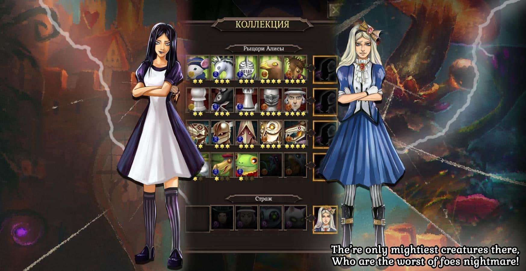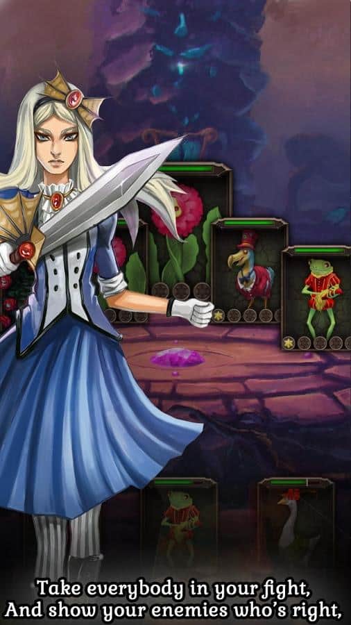 Guardia del País de las Maravillas – juego de cartas para Android que te sumergirá en la increíble historia de los guardianes del País de las Maravillas. En este juego, emprenderás un viaje memorable al Reino de los cuatro palos, donde te encontrarás con personajes familiares y otros nuevos desconocidos, y revelarás la verdad sobre la cámara secreta y la torre del reloj. Recoge tu mazo de cartas y lucha contra las fuerzas del mal que intentan derrotarte. Desarrolla tus tácticas de guerra y mantente fiel a ellas a lo largo del juego. Sumérgete en el oscuro mundo del juego, que te deleitará con una historia espeluznante e inolvidable con giros inesperados y un final sorprendente.