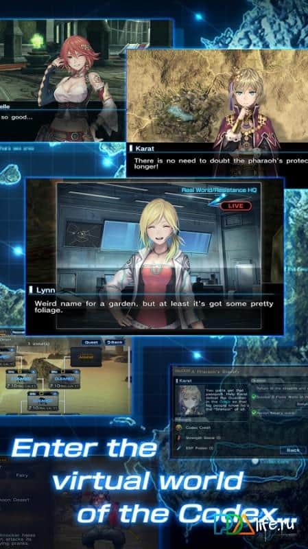 Guardian Codex - juego de rol del principal desarrollador SQUARE ENIX. La mecánica del juego Guardian Codex combina elementos de rol y estrategia con batallas por turnos, por supuesto, los desarrolladores no se han olvidado de atributos de juego tan populares hoy en día como el desarrollo de personajes, la mejora y los coleccionables. La trama del juego se desarrolla en un lejano 2030, cuando el mundo fue dividido entre el Imperio y las fuerzas de la Resistencia. El ejército imperial superaba en número a los oponentes, y la característica era mucho mejor. Las fuerzas de la Resistencia no tenían otra opción que enviar a sus agentes a "Código" - una versión virtual del mundo antiguo, uno de esos agentes tendrás que jugar. Y la tarea principal será encontrar y entrar en el mundo real de los legendarios "Guardianes", en el cual tendrás la oportunidad de obtener la ventaja sobre las tropas imperiales.