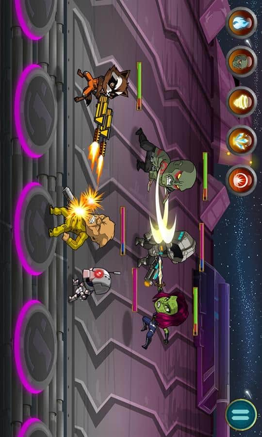 Guardians of the Galaxy: TUW - una emocionante acción de la famosa estudio Marvel. En este juego te esperan los mismos héroes que estaban en la película, 'Guardians of the Galaxy', en la que se basa este juego. Elige a tu héroe favorito y lucha contra las fuerzas del mal. Un juego con elementos de RPG y diversas habilidades de tus héroes.