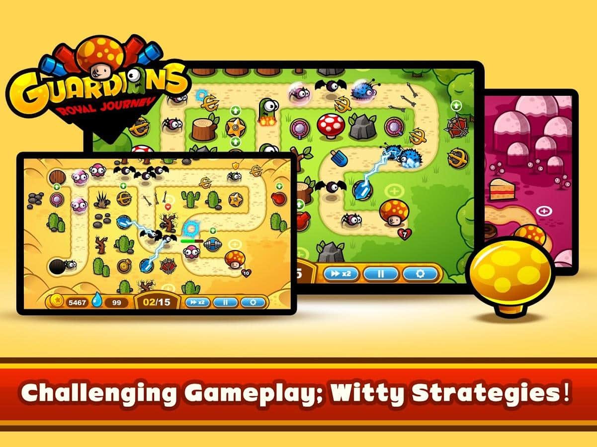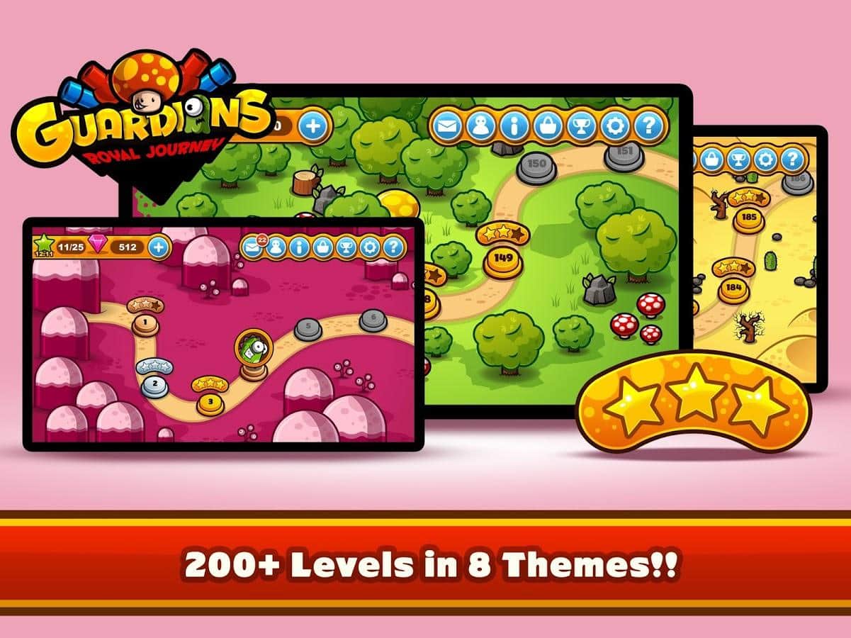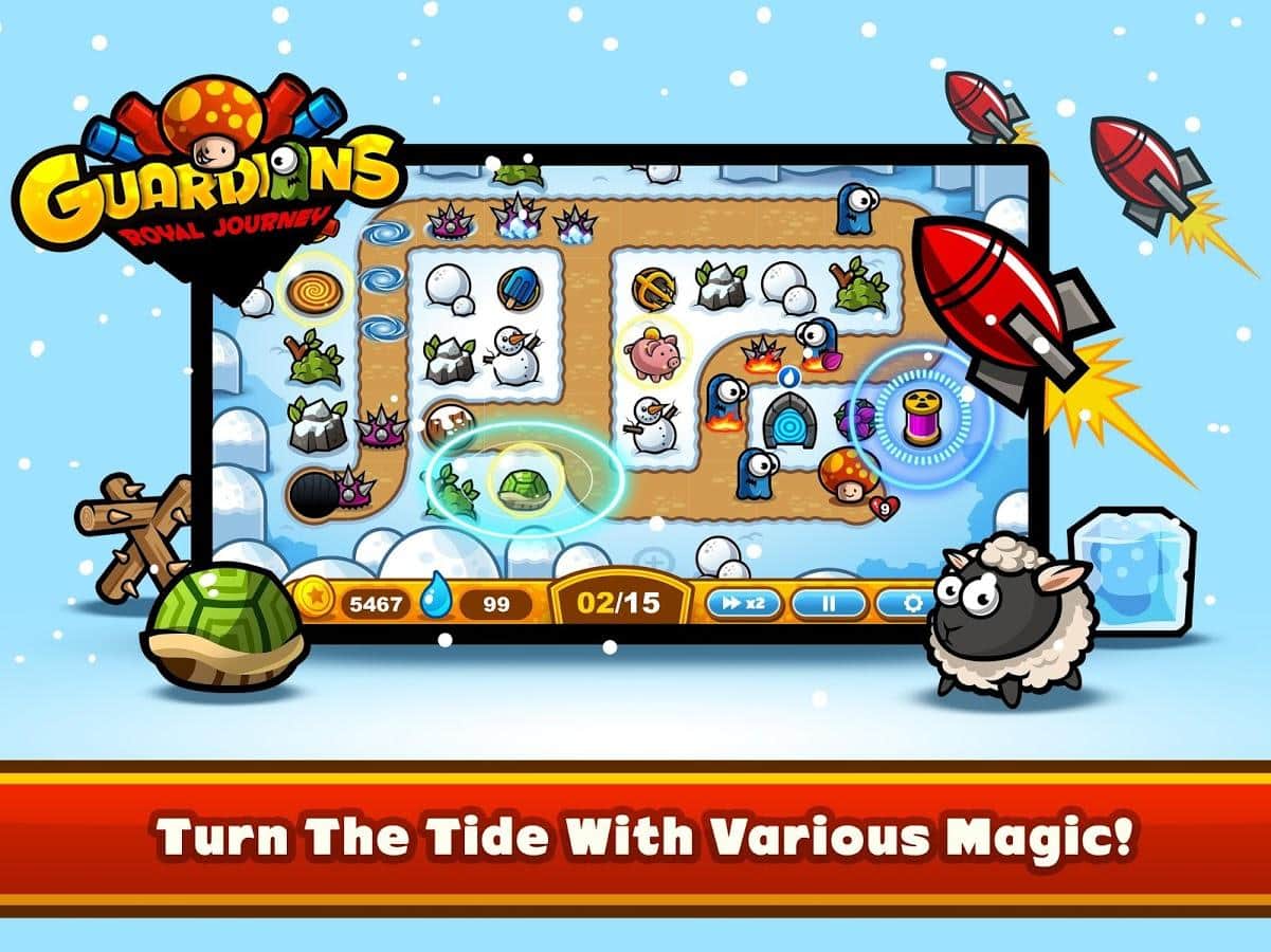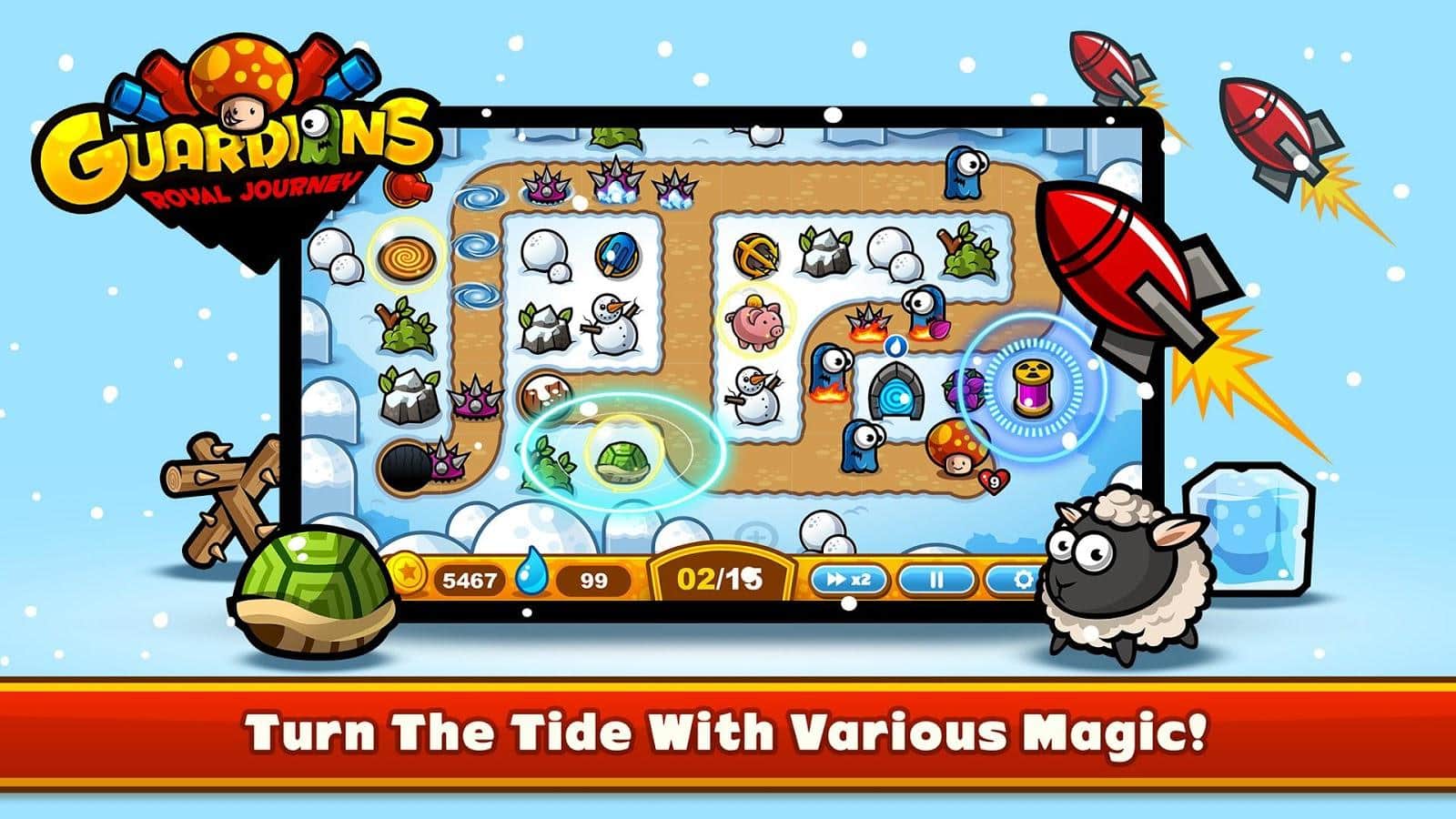 Guardianes: el Viaje Real – un juego del género de defensa de torres. Es bastante antiguo y los desarrolladores no han dedicado suficiente tiempo para hacerlo tan conveniente e interesante. Completa más de 1200 niveles, cuya dificultad aumenta. Usa diferentes armas: bombas, misiles, venenos y gas tóxico, desbloquea el acceso a una variedad de posibilidades. Elige uno de los modos disponibles, y hay muchos: tiempo limitado, destruir a los jefes, venturoli y otros. Disfruta de gráficos nítidos y un proceso de juego dinámico.