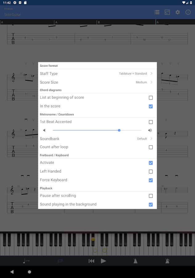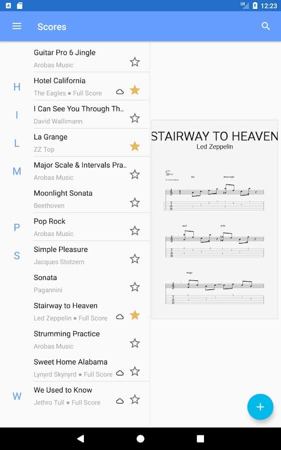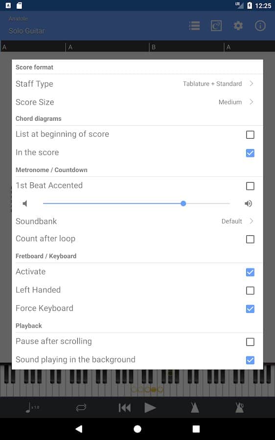 Guitar Pro para dispositivos Android - ¡los sueños se hacen realidad! Este programa es ideal tanto para principiantes en la guitarra, como para guitarristas experimentados que desean practicar sus canciones favoritas en cualquier momento y lugar. Es posible tocar todas sus tablaturas de guitarra y mucho más. Esta aplicación es una gran contraparte para Android del famoso software para PC Guitar Pro.