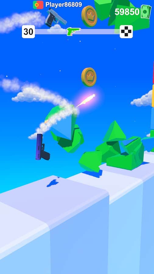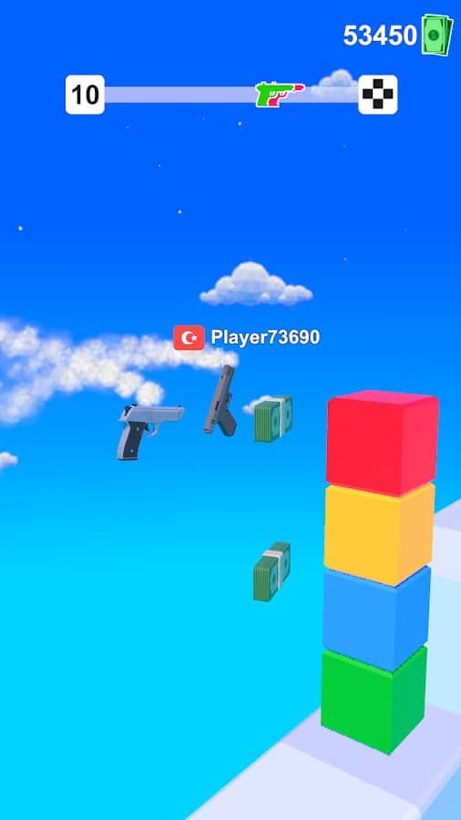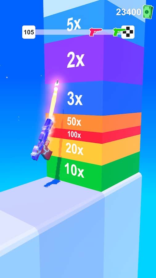 Gun Race es un adictivo juego de "correr". Jugando como una pistola, necesitamos llegar a la línea de meta, recogiendo mucho dinero en el camino. Con el dinero, podemos comprar todo tipo de pistolas. Nos verán obstaculizados por grandes paredes. Al final, hay una pared con bonificaciones. Cuanto mejor elijas disparar, más dinero ganarás. ¡Bueno, sigamos adelante y disparemos!