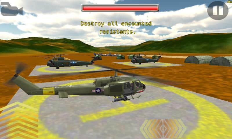 Gunship-II Fans juegos para Android C. H. A. O. S. es muy parecido al arcade. Te encontrarás en la cabina del helicóptero, gestionarás y ejecutarás las órdenes del comando. Dependiendo de las tareas, tendrás que volar en helicóptero para el ejército estadounidense en ese momento y realizar misiones bastante variadas. Aquí encontrarás grupos de rescate bajo el fuego de apoyo de los helicópteros de carga, y por supuesto - la destrucción de objetivos. La gestión se realiza mediante el acelerómetro y botones virtuales en tu pantalla. Aunque el juego parece rústico en los gráficos, transmite completamente la sensación de vuelo.