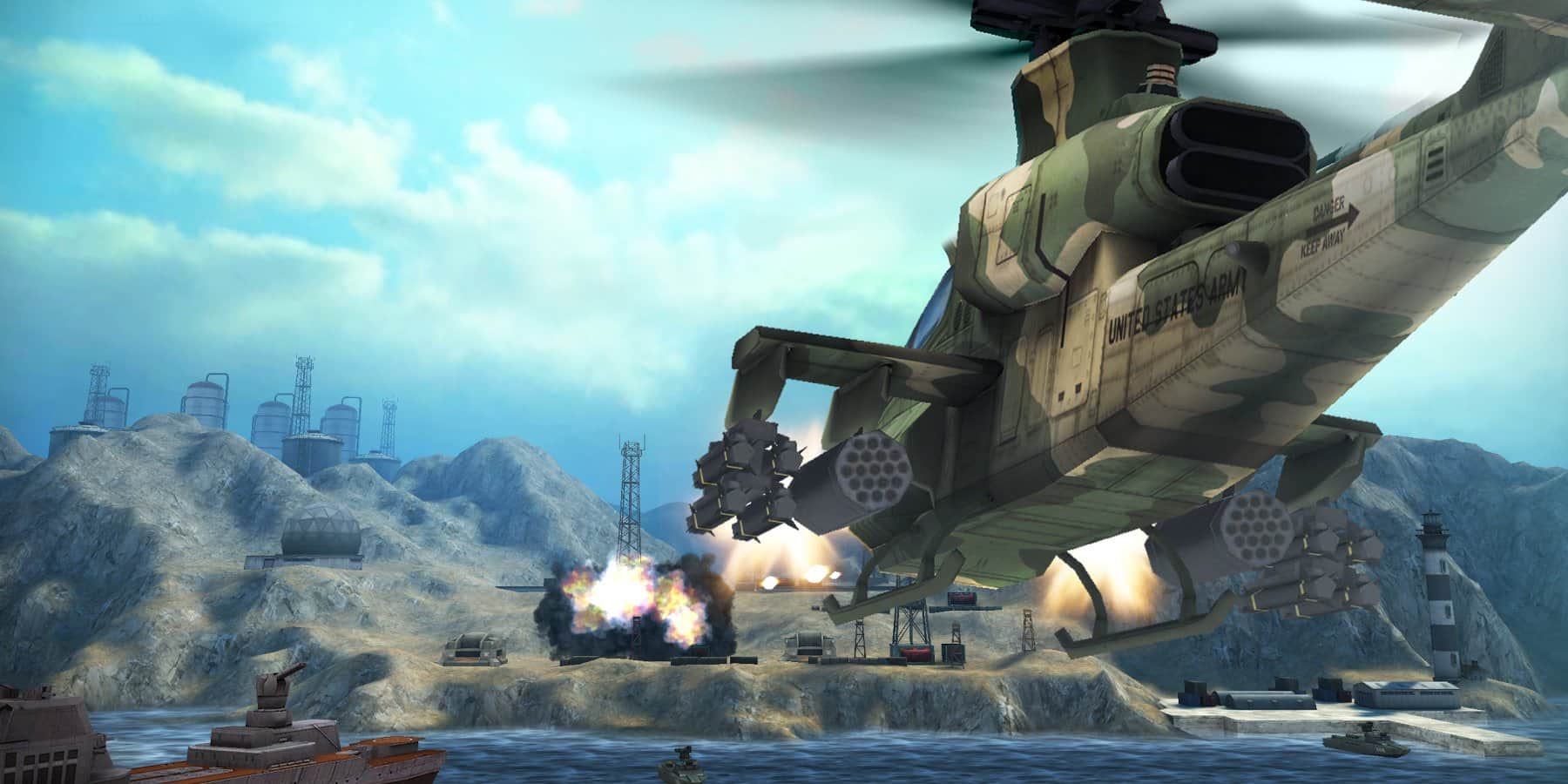 Gunship Battle2 VR shooter para Android donde ayudarás al piloto militar a cumplir la misión de combate. En este juego tomarás el control del personaje principal Dylan, quien perdió su memoria y su familia y ahora busca venganza. Controla un helicóptero militar y completa todas las misiones de este juego, destruyendo objetos terrestres y aéreos de tu enemigo. Eleva alto en el cielo y realiza acrobacias tratando de escapar de la persecución. Tu helicóptero está equipado con misiles y armas poderosas que puedes utilizar. Destruye la base enemiga y realiza muchas salidas.