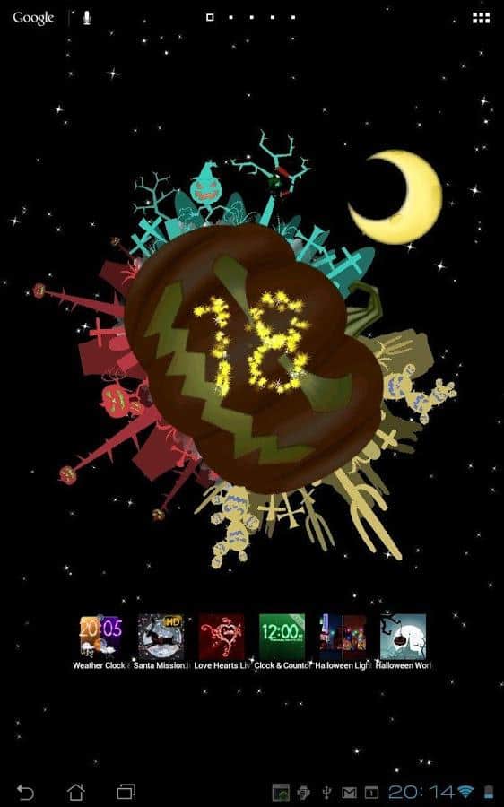Fondo de pantalla en vivo de Halloween Bwch – continuando el tema del Día de Todos los Santos en el fondo de pantalla en vivo para Android, presentamos a su atención el planeta Halloween en forma de una ominosa calabaza, hay tres mundos: el Bosque Sinistro, el Infierno y la Naturaleza. Toca a la bruja y ella te mostrará la cuenta regresiva de los días hasta la celebración de Halloween. También hay un cambio automático de día y noche, dependiendo de tu hora del día. Un gran número de la otra vida y parafernalia festiva, niebla, árboles aterradores y más. ¡Feliz Halloween para ti!