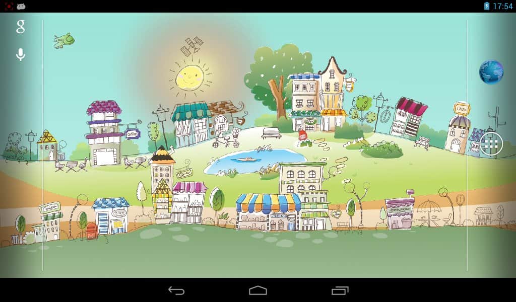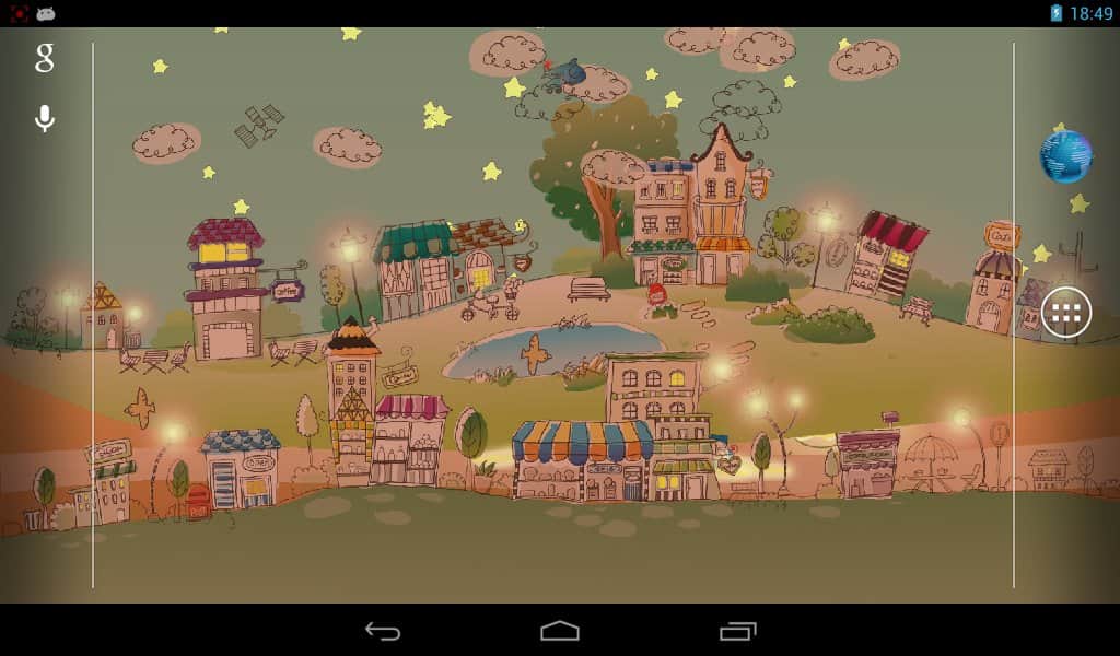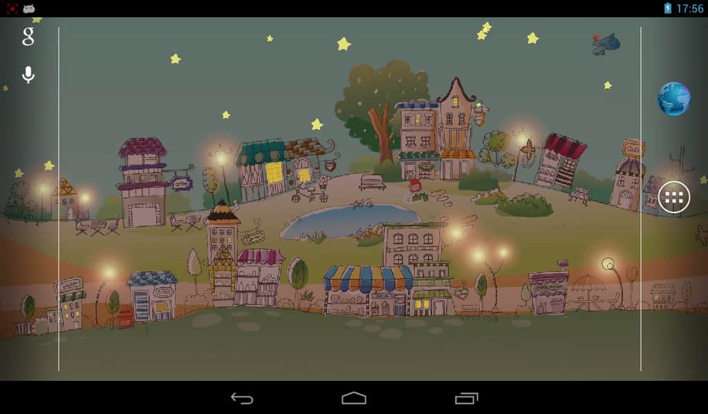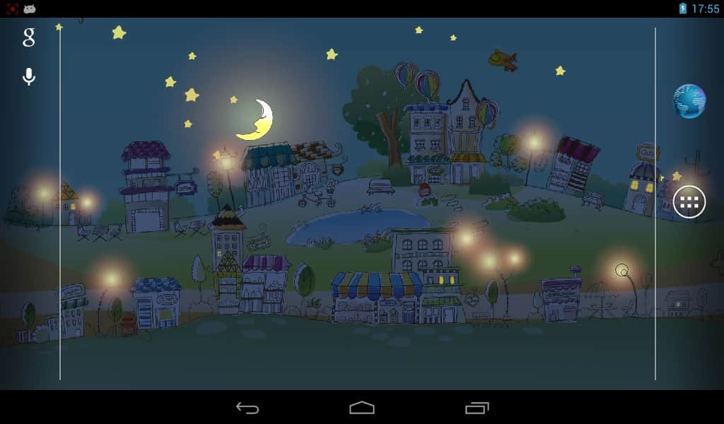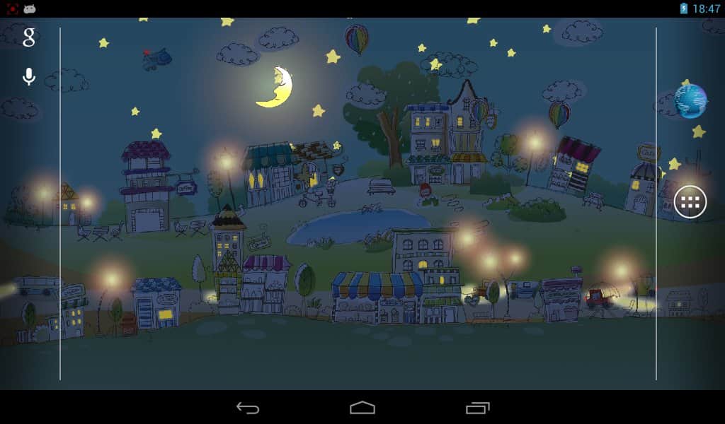 Papel tapiz de ciudad dibujada a mano / Ciudad gráfica en papel tapiz vivo – hermosos papeles tapiz vivos para dispositivos Android con una solución de color bastante discreta y realizados en un estilo de dibujo hecho a mano. Descarga e instala este papel tapiz en la pantalla de tu smartphone y aparecerá ante ti una ciudad entera con edificios simpáticos, coches, globos de aire, un cocodrilo en el lago y otras bellezas. Los papeles tapiz contienen modos de tiempo del día (nocturno, matutino, diurno, vespertino), diferentes tipos de nubes, estrellas personalizables y mucho más, que te ayudará a hacer de esta ciudad la mejor en la pantalla de tu dispositivo.