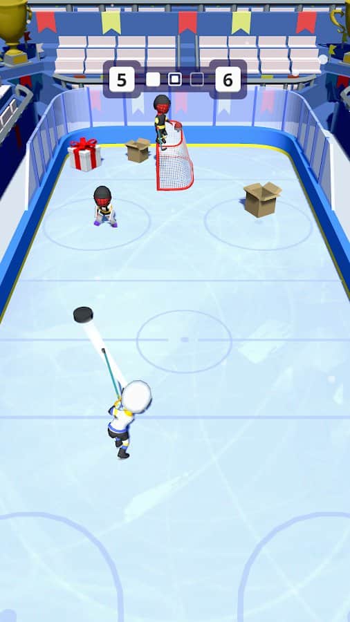 ¡Hockey Feliz! – un emocionante juego deportivo, donde marcas goles en la portería. Crea tu hockey sobre hielo y realiza ataques sofisticados apuntando el stick con precisión a la portería del oponente. Supera todos los obstáculos en tu camino y esquiva a los defensores del equipo contrario. Gana puntos por golpes precisos y exactos y descubre nuevos niveles. Confía en tu rapidez y precisión y recoge todas las monedas en el camino. Alinea la trayectoria exacta del puck y consigue el gol. Juega este juego en cualquier momento libre y disfruta de emocionantes gráficos en 3D y nuevos desafíos que te esperan adelante.