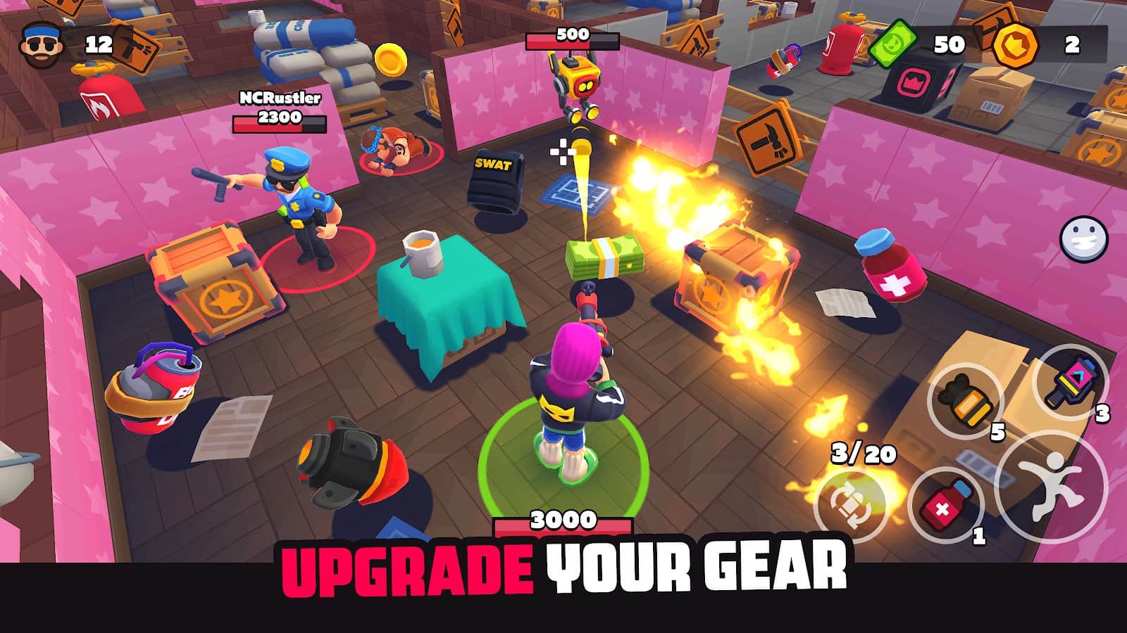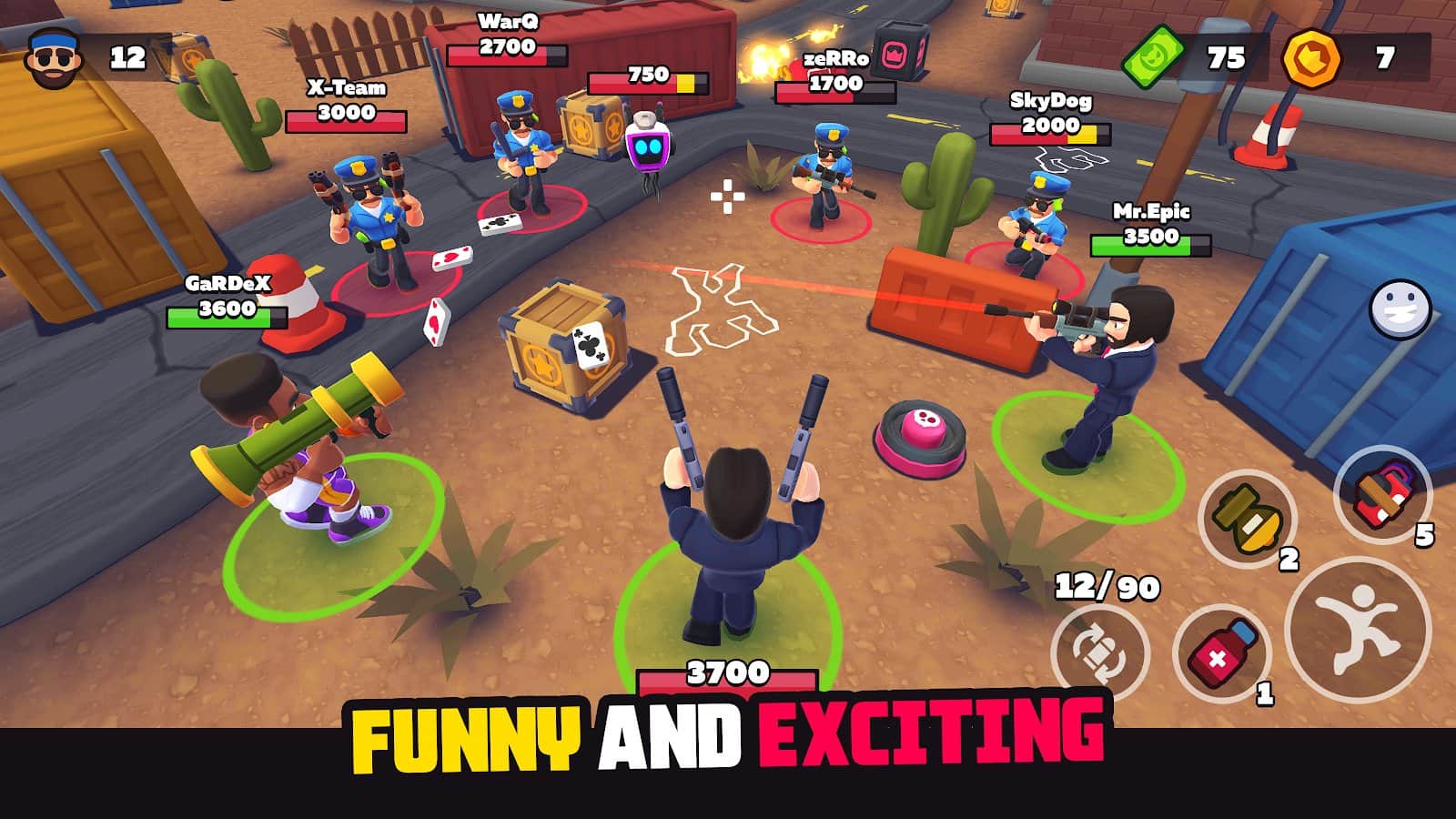 ZONA FELIZ - Batalla Real - ¡Solo una persona en esta batalla real podrá reclamar el gran premio, y podría ser tú! Elige el mejor personaje entre los demás, equípalo con poderosas armas para el combate, aprende a disparar con precisión, utiliza objetos del entorno como cobertura durante los ataques enemigos, usa granadas y otros artículos adicionales, rompe cajas y recoge recursos valiosos. Conviértete en un jugador legendario, capaz de ganar numerosas victorias tanto en solitario como en equipo con otras personas.