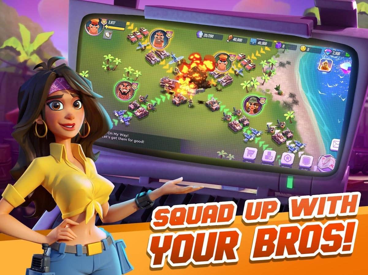Hardhead Squad: MMO War – crea tu propio ejército poderoso y lidera en la batalla. Conquista territorio, construye y conquista tierras, y narusevicius su fuerza. Contrata personajes legendarios y musculosos, planea las tácticas de ataque y modela los métodos de protección. ¡Disfruta del juego en tiempo real y conquista todo el mundo! Encuentra aliados y forma alianzas para irrumpir en la isla de Verdes, conviértete en famoso en todo el mundo como el ejército invencible, recibe los regalos de los pueblos sometidos.