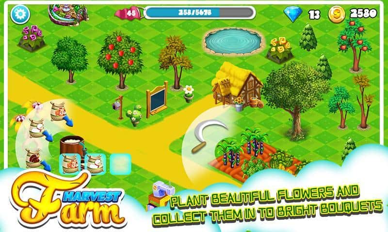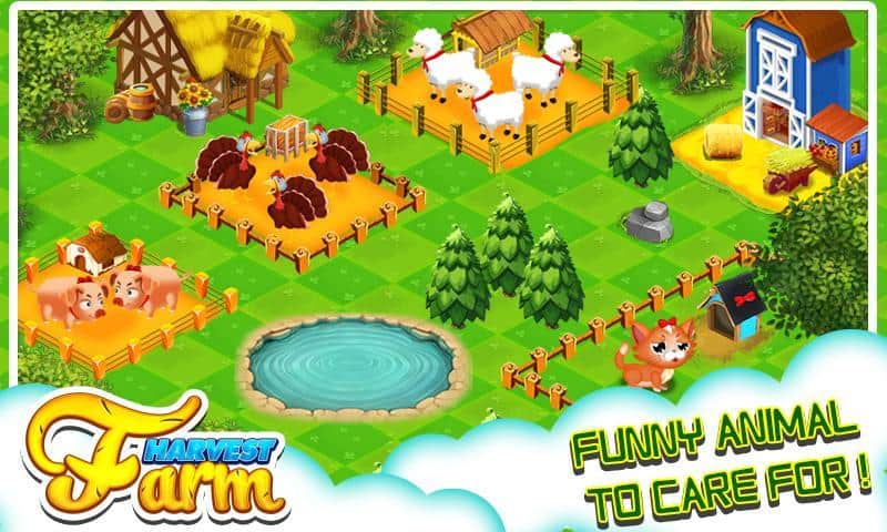 Granja de Cosecha - Si estás cansado de la acción intensa y lo único que quieres es jugar un juego tranquilo, entonces has venido al lugar correcto. Conviértete en granjero y toma el control de la gestión de una granja. Por supuesto, al principio tu granja es bastante pequeña, pero con el tiempo podrás expandirla, comprar nuevas áreas, nuevas mascotas y completar más pedidos. Construye, mejora y crea todo lo que desees.