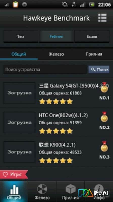 Hawkeye Benchmark – un gran programa para Android del desarrollador Appems, gracias al cual podrás probar el dispositivo en su parte de hardware o software. Los resultados de la prueba te ayudan a tomar decisiones sobre la idoneidad de algunas aplicaciones para optimizar tu dispositivo. De las características de Hawkeye Benchmark se pueden identificar las principales – esta es una prueba de hardware, prueba de aplicaciones, prueba, modo desafío, información sobre el dispositivo. ¡Disfruta!