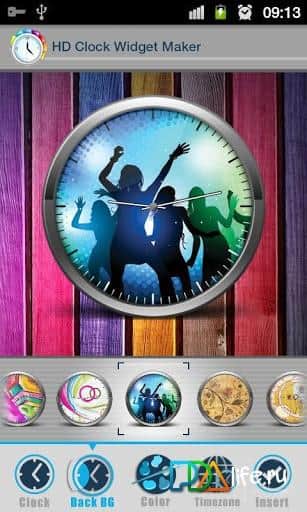 Características: color de fondo completamente personalizable, imagen de fondo, zona horaria