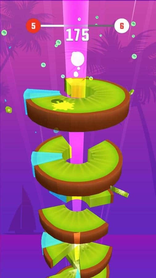 Helix Crush – un juego entretenido donde intentarás caer lo más bajo posible, pasando niveles peligrosos del juego. Toma el control de tu bola y guíala a través de los agujeros en la fruta que espiraliza hacia abajo. Tu tarea principal será alcanzar el final de los niveles y comprobar en la práctica la velocidad de tu respuesta. Mueve las piezas con un dedo buscando espacio y hundiéndote más bajo. No toques las partes contaminadas de las paredes, de lo contrario, el juego terminará. Usa bonificaciones y potenciadores y avanza más rápido en el juego. Compite con otros jugadores por los mejores resultados y disfruta de una variedad de música.