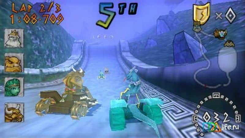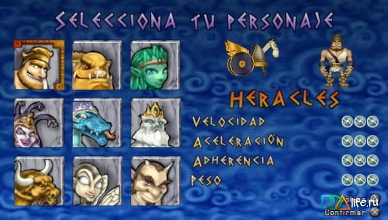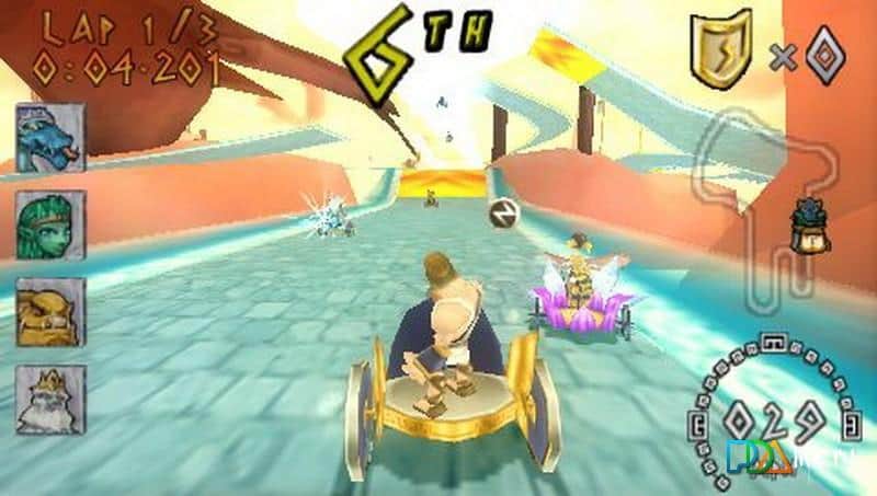 Heracles: Carreras de Carros para PSP, donde montarás en antiguos carros. En este juego tomarás el control de Hércules y pasarás por todos los niveles del juego tratando de adelantar a tus rivales y llegar a la línea de meta primero. Conduce a alta velocidad y evita todos los obstáculos y vallas en tu camino. En este juego tienes que derrotar a tus enemigos participando con ellos en la carrera. Además de los villanos principales en el camino, te encontrarás con los secuaces de los enemigos, a los que podrás lanzar flechas, rayos y piedras. Ayuda a Hércules a derrotar a todos los enemigos y adelantarles en la carrera. En este juego encontrarás una amplia variedad de cartas, grandes bonificaciones y potenciadores, y recoger monedas.