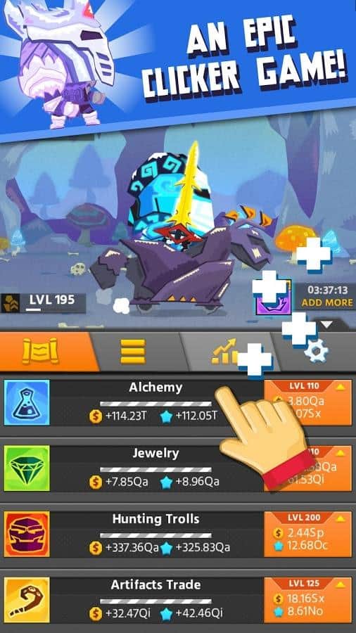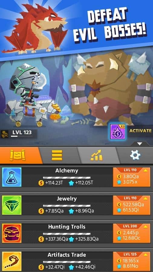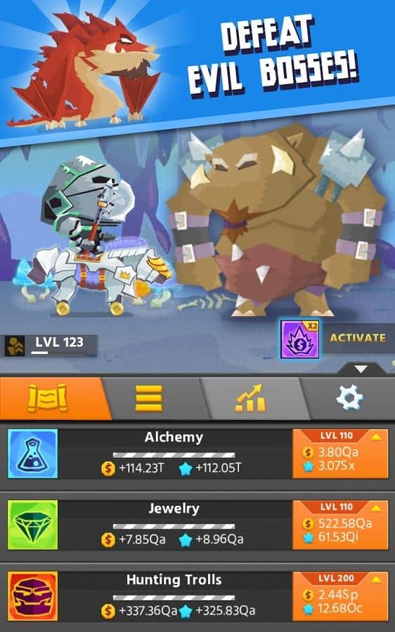 Simulador de Héroes: simulador de aventura ociosa de un héroe que ni siquiera tiene que esforzarse por hazañas! Es bueno ser el héroe que todos hacen dinero. Así que aquí, eres un tipo de héroe, pero simplemente recoge dinero tocando la pantalla, o poniéndolo en alguna vida que crece. Este juego es un simple clicador, que no hace nada, solo para matar un poco de tiempo. Sin embargo, este juego está bastante bien hecho, tiene buenos gráficos y una animación genial.