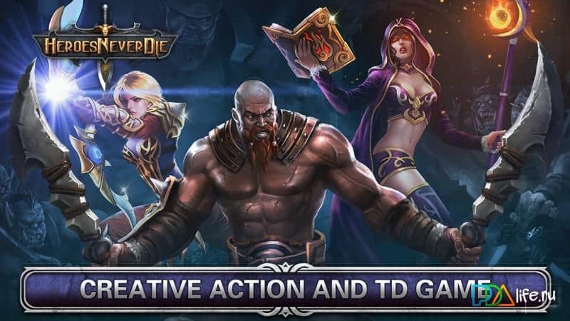 En Heroes Never Die, los jugadores asumirán el papel de uno de tres héroes de clases estándar: guerrero bárbaro, arquera y hechicera. Este juego es una mezcla de defensa de torres y RPG, donde, a diferencia de muchos proyectos, el personaje no es un objeto adicional a las numerosas estructuras defensivas, sino el protagonista principal, que es protegido por mecanismos defensivos.