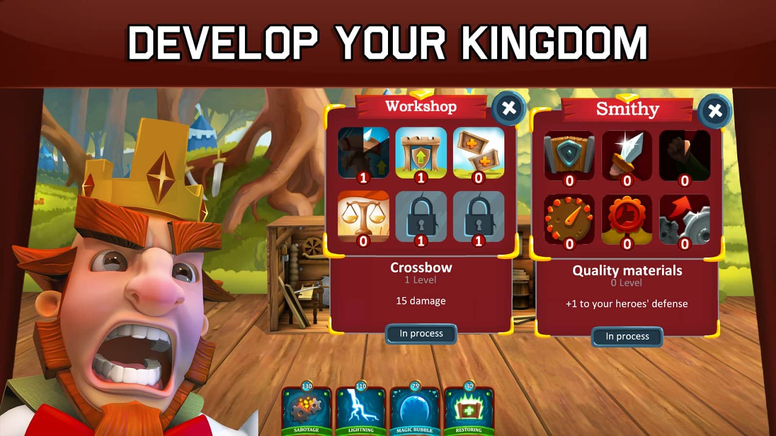 Heroes Of Scene es un juego multijugador emocionante en el que el jugador tiene la oportunidad de gestionar un reino de muñecos y juguetes infantiles que han cobrado vida. Se puede decir que el juego se divide en dos tipos de juego. En el primero, necesitas desarrollar tu reino y mejorar la infraestructura del castillo, mientras que en el segundo debes defenderte y atacar al enemigo mediante la invocación de nuevas fuerzas. Además, se pueden utilizar diversas habilidades y hechizos que ayudan en la dura batalla. Cuanto mejor esté desarrollada la economía del reino, más recursos tendrá. Los recursos son necesarios para mantener un ejército fuerte.
