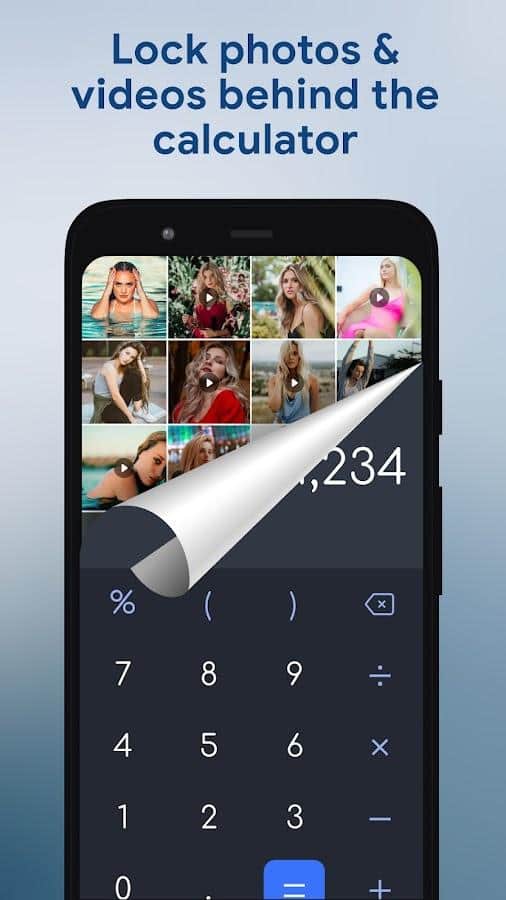 Disfraza los archivos necesarios, notas, reproductor de video o cámara bajo la aplicación de calculadora, cuando ingreses la contraseña proporcionada en la que la aplicación oculta se abre inmediatamente. Los datos dejados bajo protección en esta aplicación no se mostrarán en ningún otro lugar, por lo que solo puedes verlos o editarlos dentro. Además, si temes perder accidentalmente todos tus datos, tienes la opción de hacer una copia de seguridad y luego restaurarlos si se pierden. Si olvidaste tu contraseña, ingresa "11223344=" y continúa con el procedimiento.