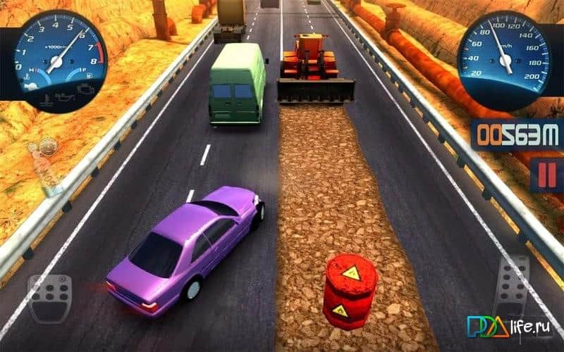 Highway Sprinter / Highway Sprinter - Carreras arcade convencionales para Android, que están hechas como un pasatiempo. Tienes que competir en pistas con tráfico en las carreteras donde a veces hay reparaciones o técnicos de mantenimiento. Cuanto más lejos conduzcas, más dinero ganarás. También no olvides cerrar alrededor de la máquina, te dará una moneda extra. El dinero ganado se puede gastar en mejorar el coche o comprar uno nuevo, más rápido.